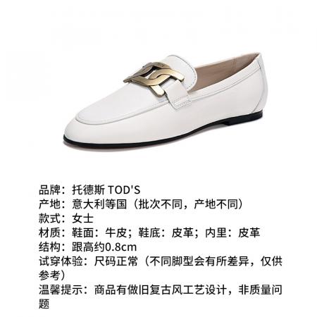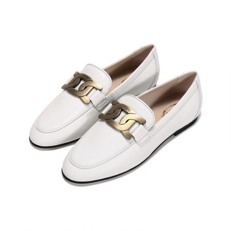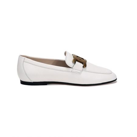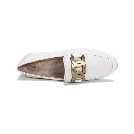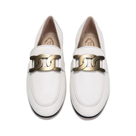 自营Tod'S 托德斯女士牛皮麻花扣KATE饰扣单鞋乐福鞋皮鞋白色 XXW79A0DD00MIDB001