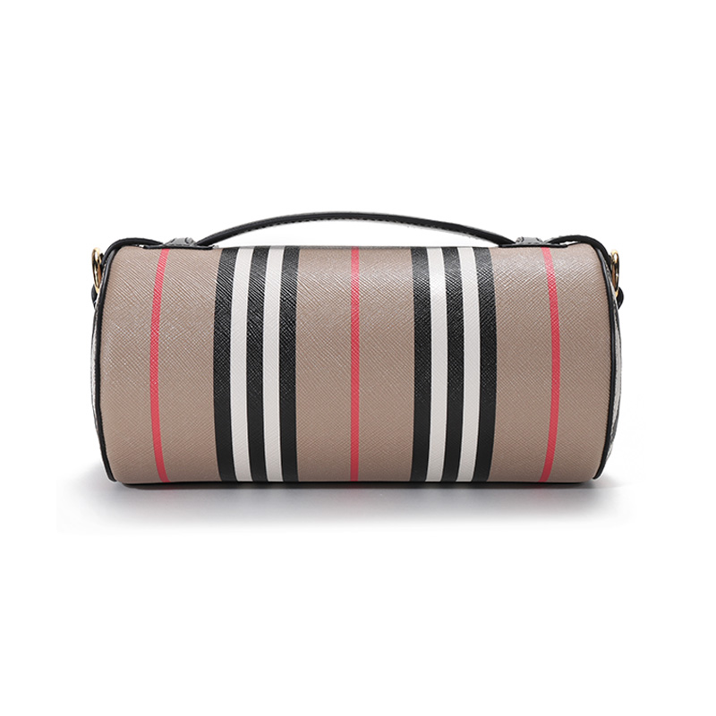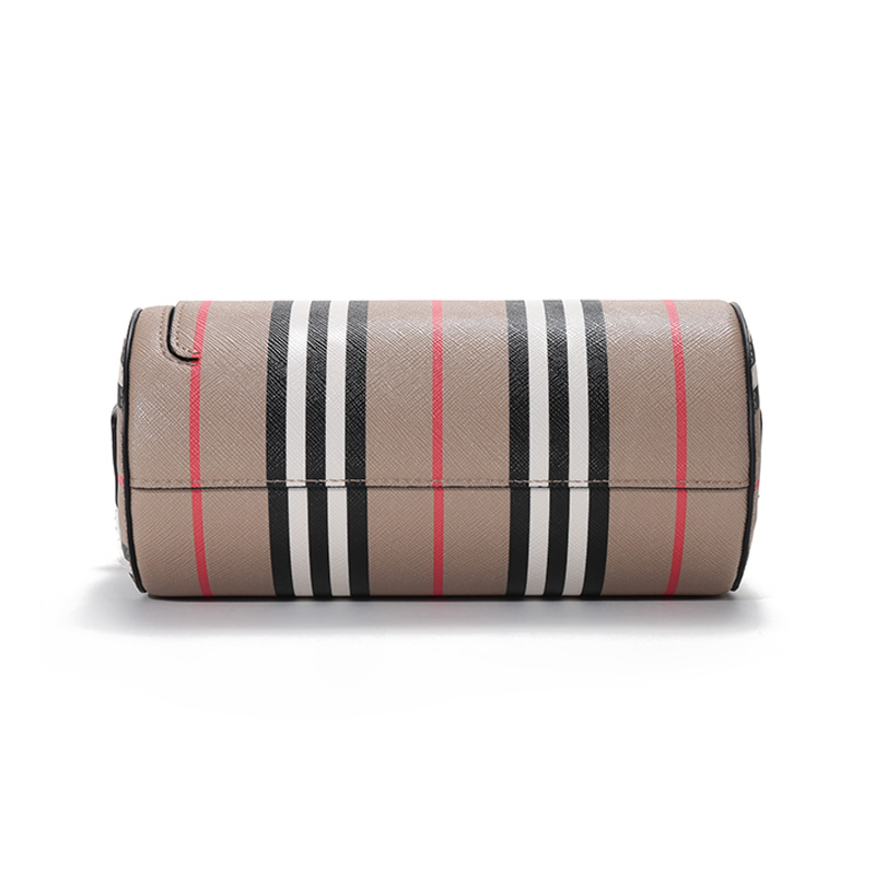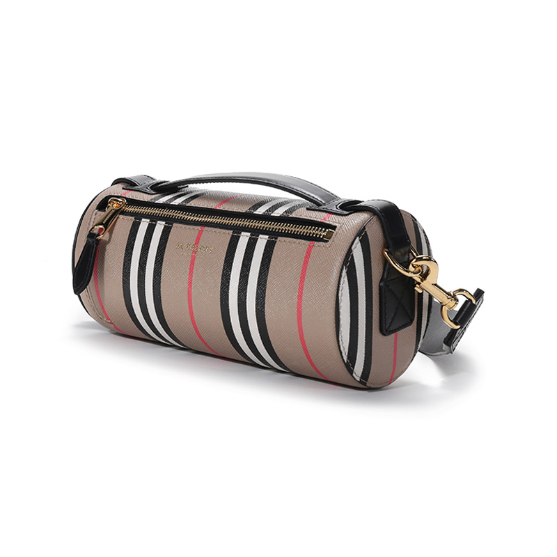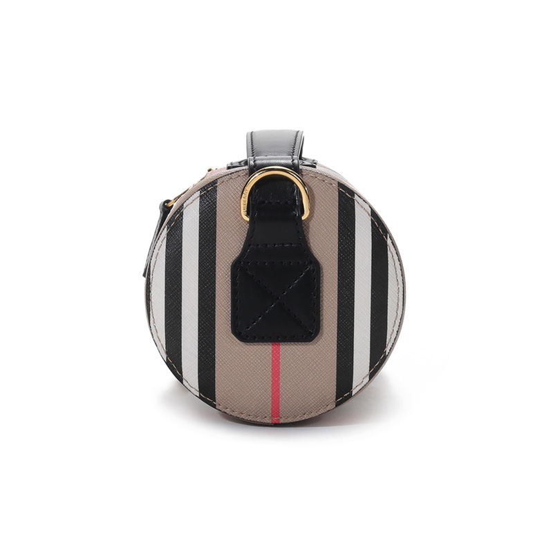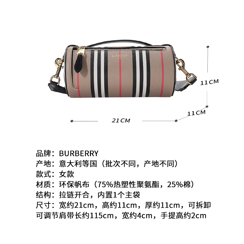 自营Burberry 博柏利 女款环保帆布手提单肩斜挎包巴瑞尔包典藏米色标志性条纹圆筒包 80304561