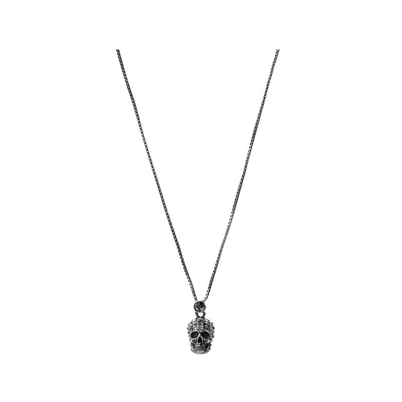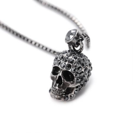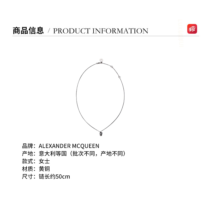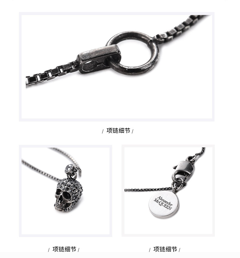 自营Alexander Mcqueen 亚历山大·麦昆 女士黄铜仿古骷髅头项链银黑色 582694 J160Y 1177