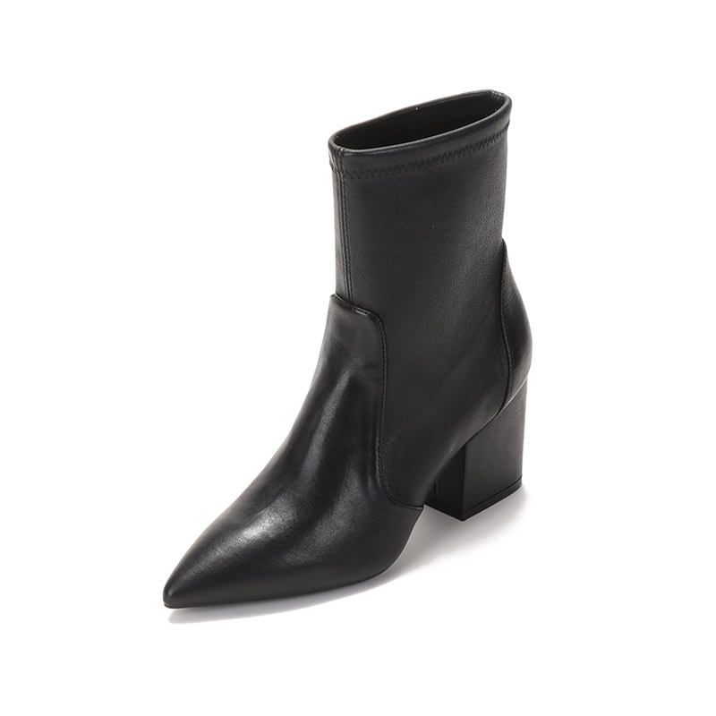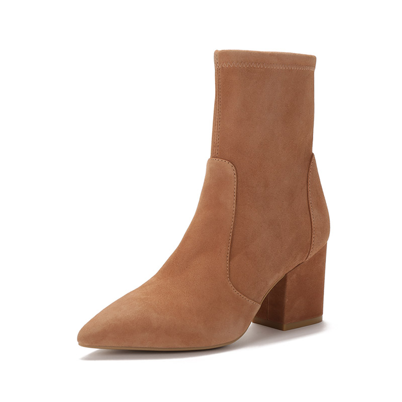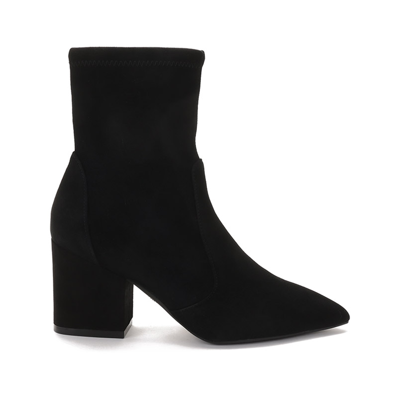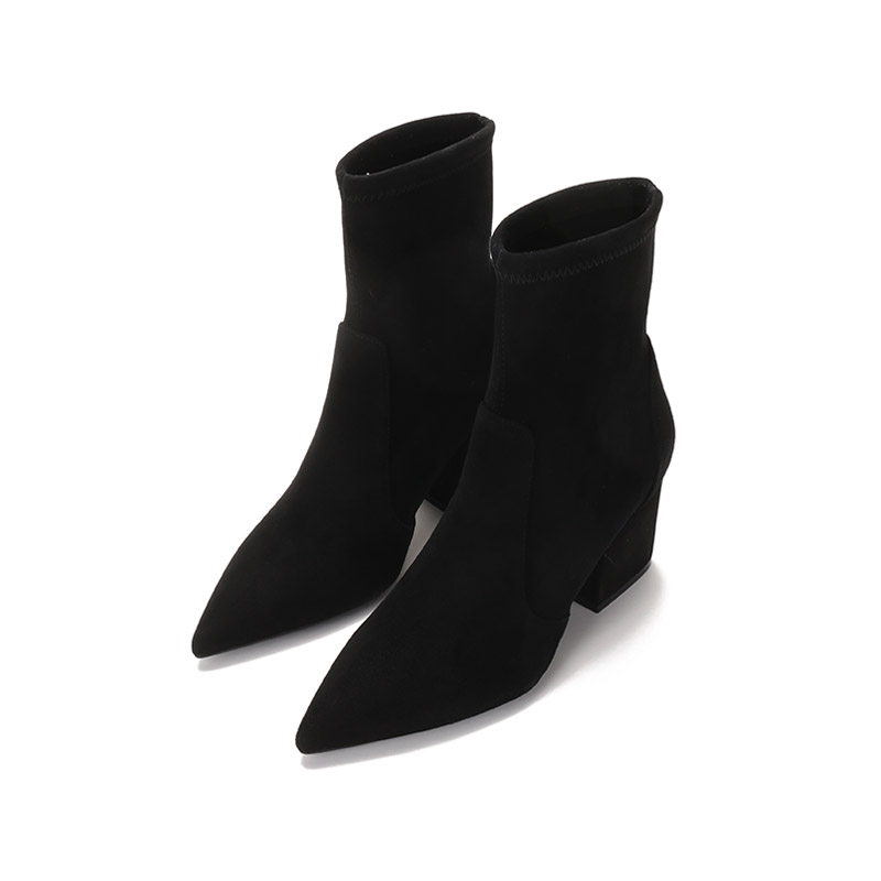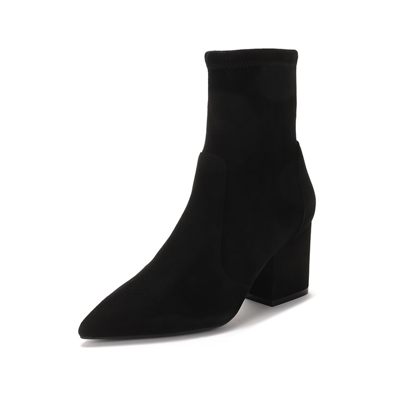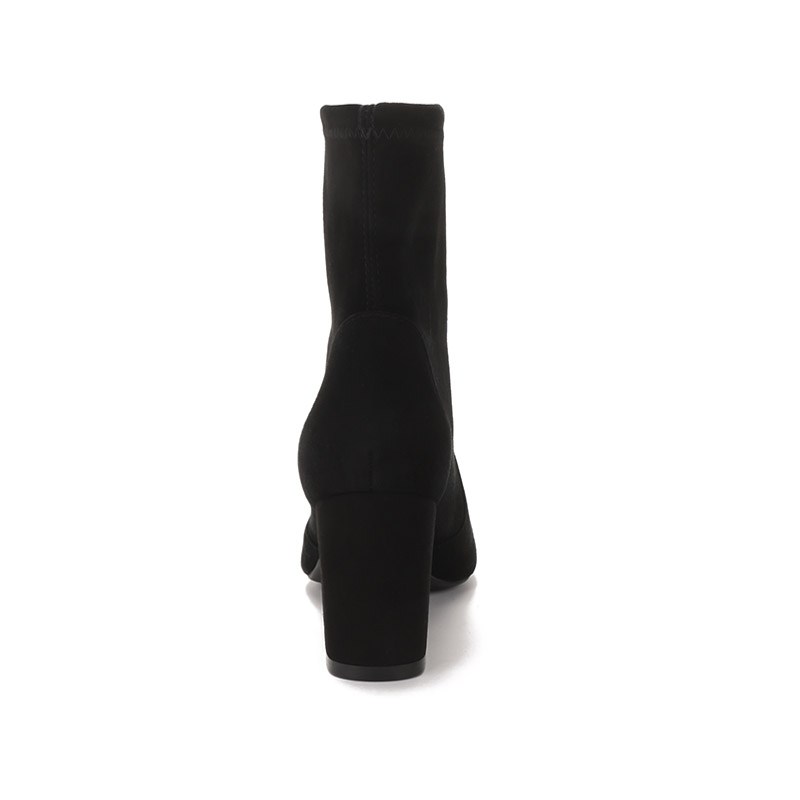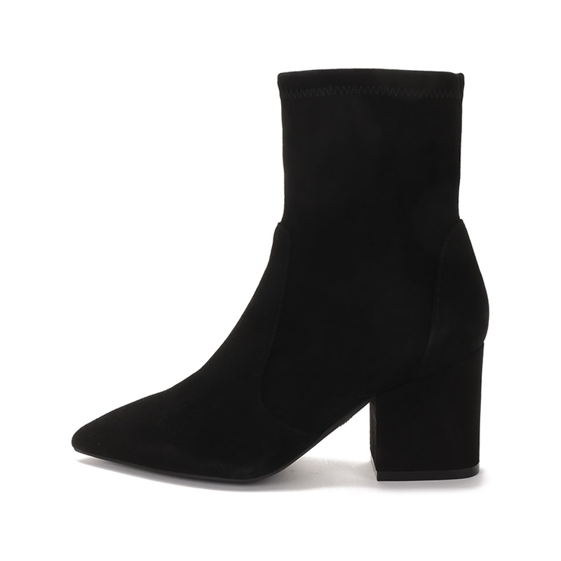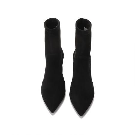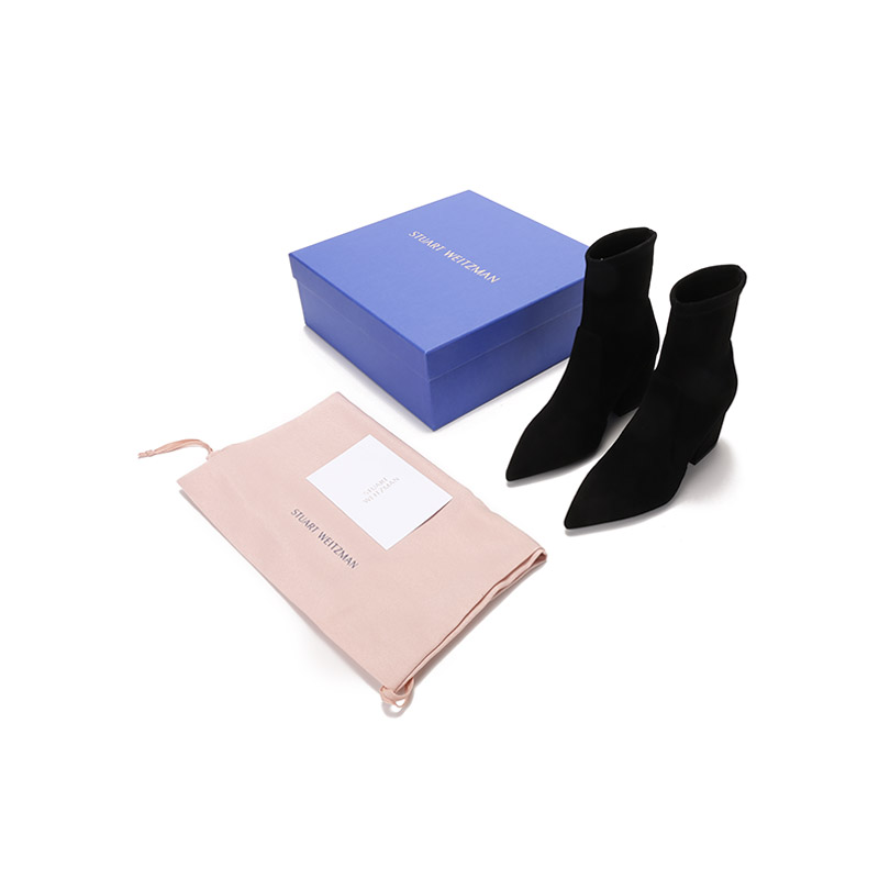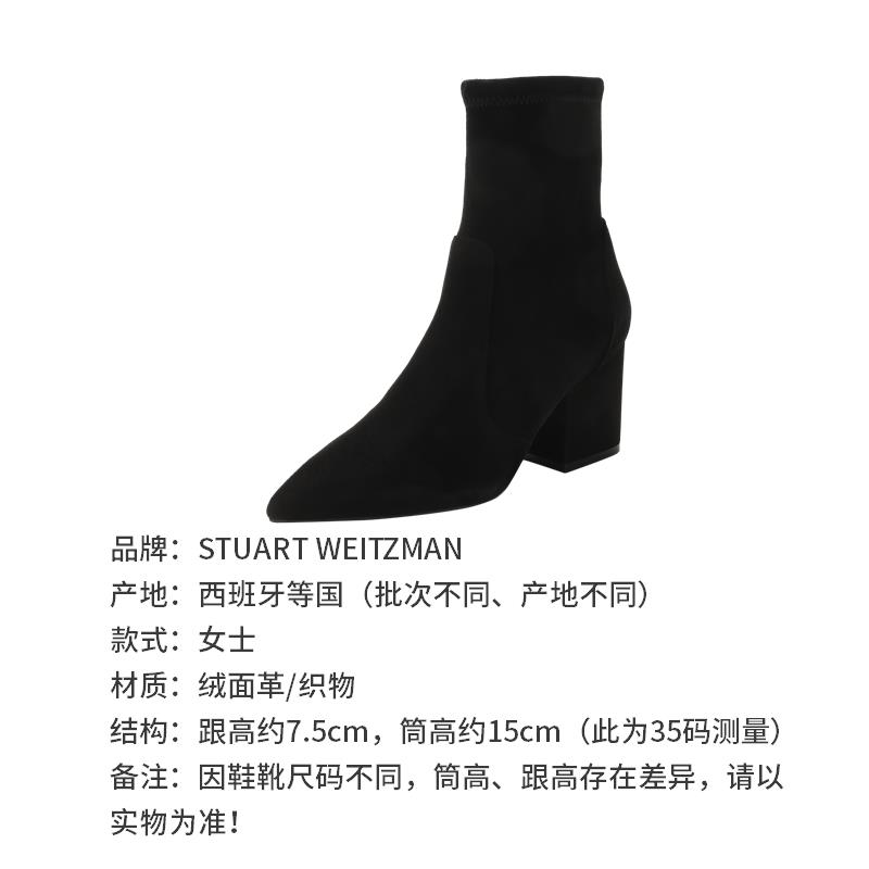 自营Stuart Weitzman 思缇韦曼 女士绒面革/织物尖头靴子短靴袜靴黑色 VERNELL 75 BLK SUS SUEDE STR 跟高7.5cm