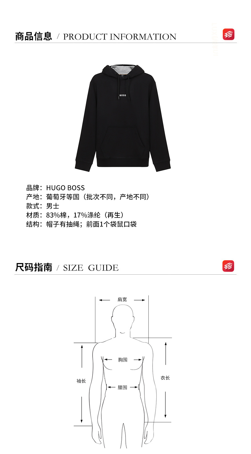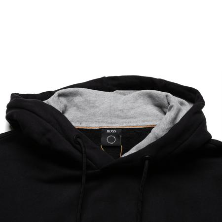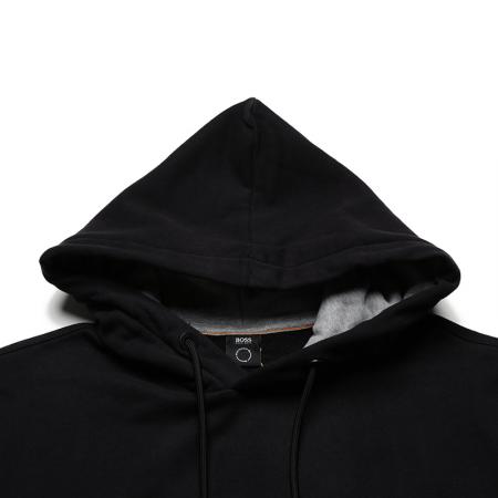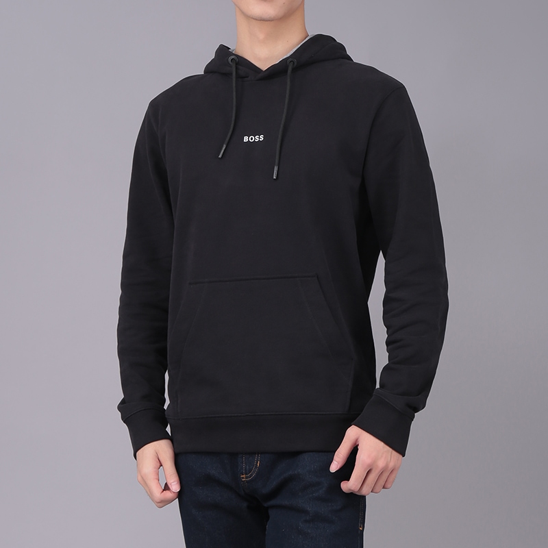 自营Hugo Boss 雨果博斯男士棉质连帽卫衣运动衫黑色LOGO图案 50462831 001