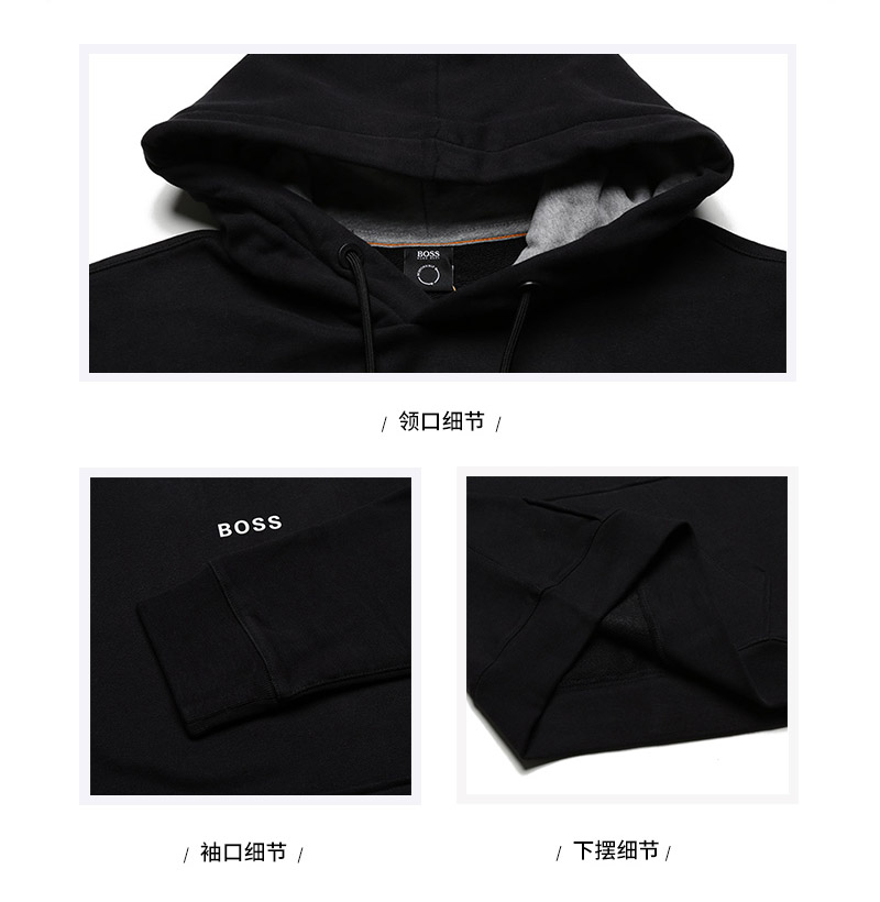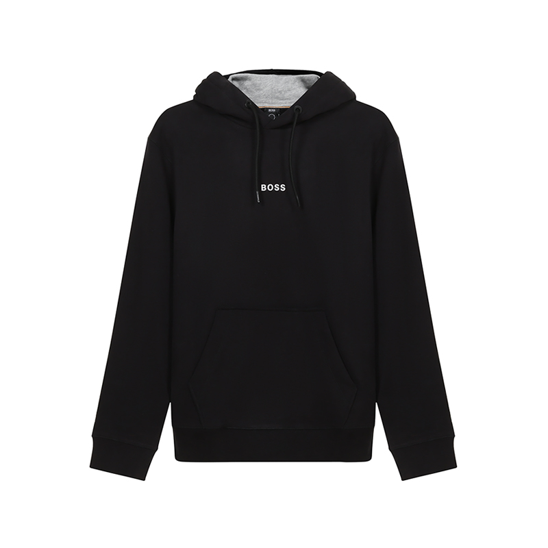 - BOSS Menswear 的连帽运动衫。这款运动衫采用宽松版型设计,采用柔软的棉质和聚酯纤维混纺毛圈布制成。 BOSS标志出现在胸前,袋鼠口袋则是点睛之笔