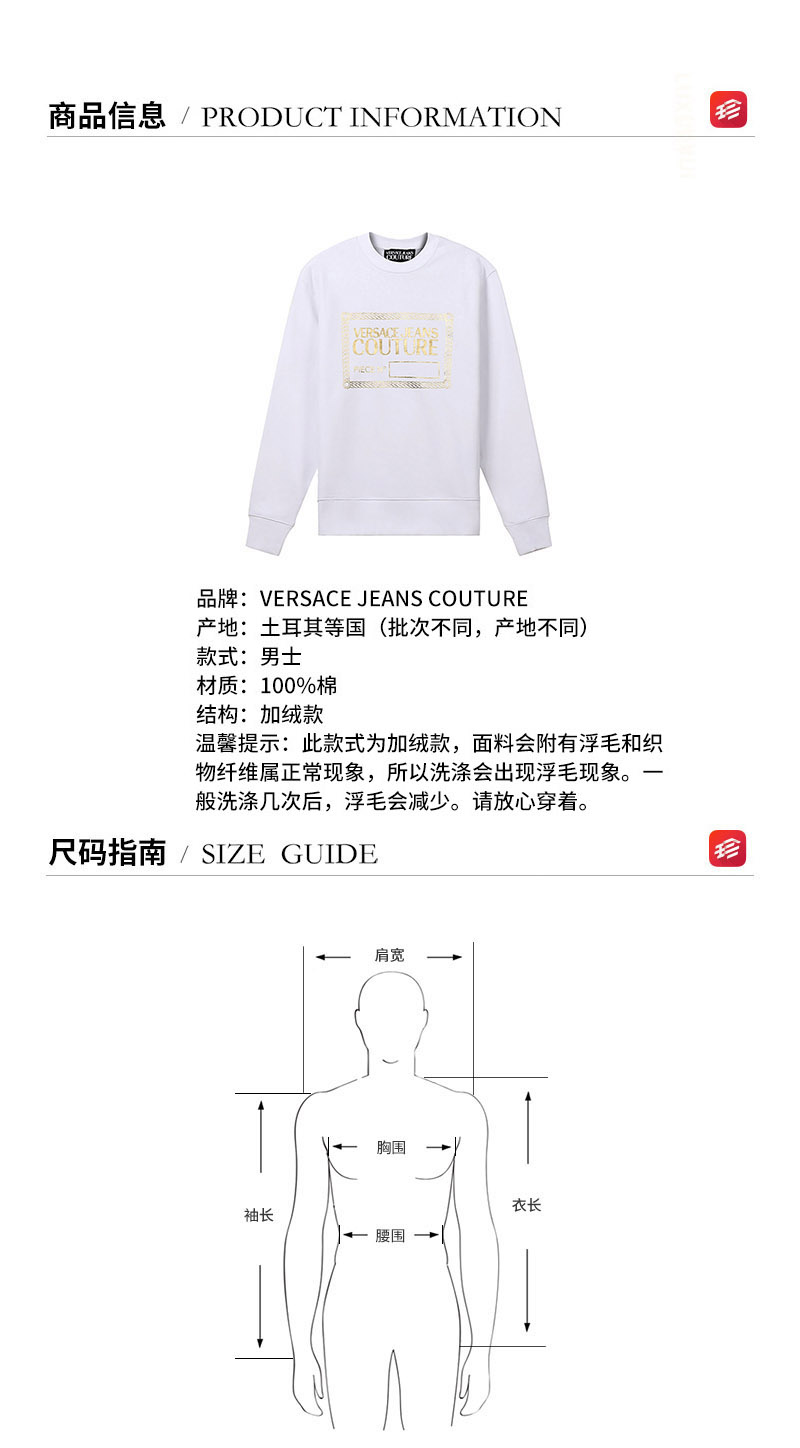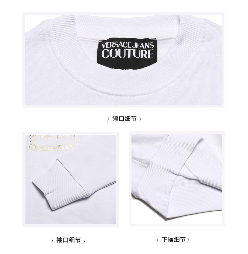 自营Versace Jeans Couture 范思哲男士棉质加绒款圆领长袖卫衣运动衫白色LOGO图案 71GAIT15 CF00T G03
