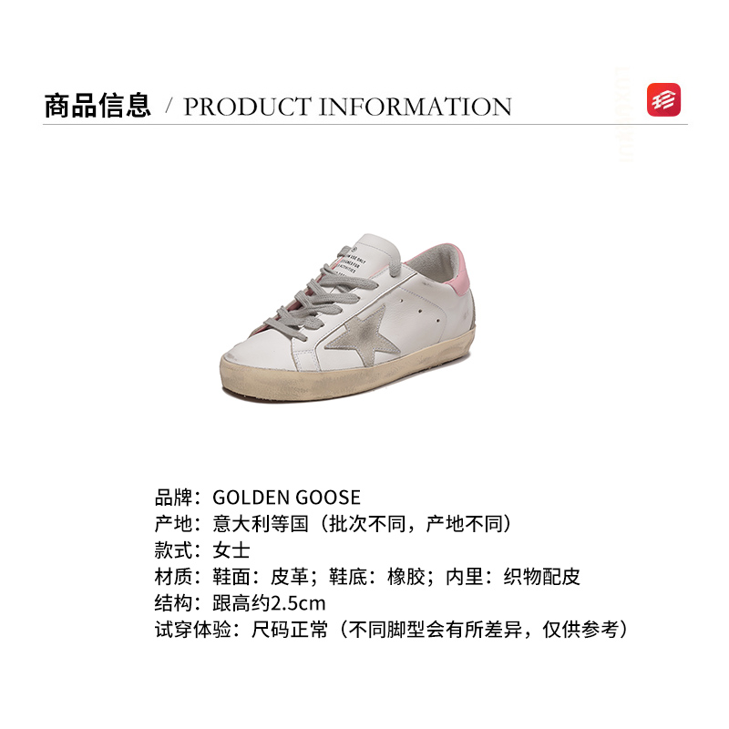 自营Golden Goose Deluxe Brand 【新品】女士皮革Super-Star系带休闲运动鞋板鞋脏脏鞋小脏鞋白色做旧星星粉尾 GWF00102 F002569 10914