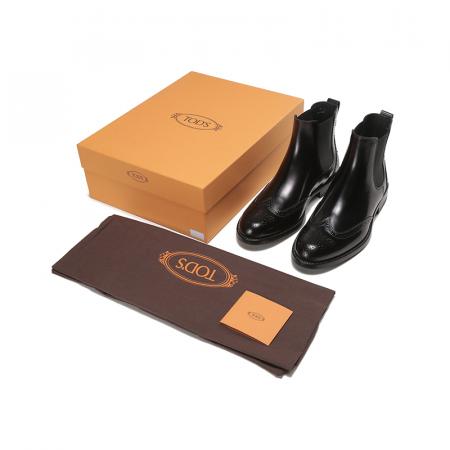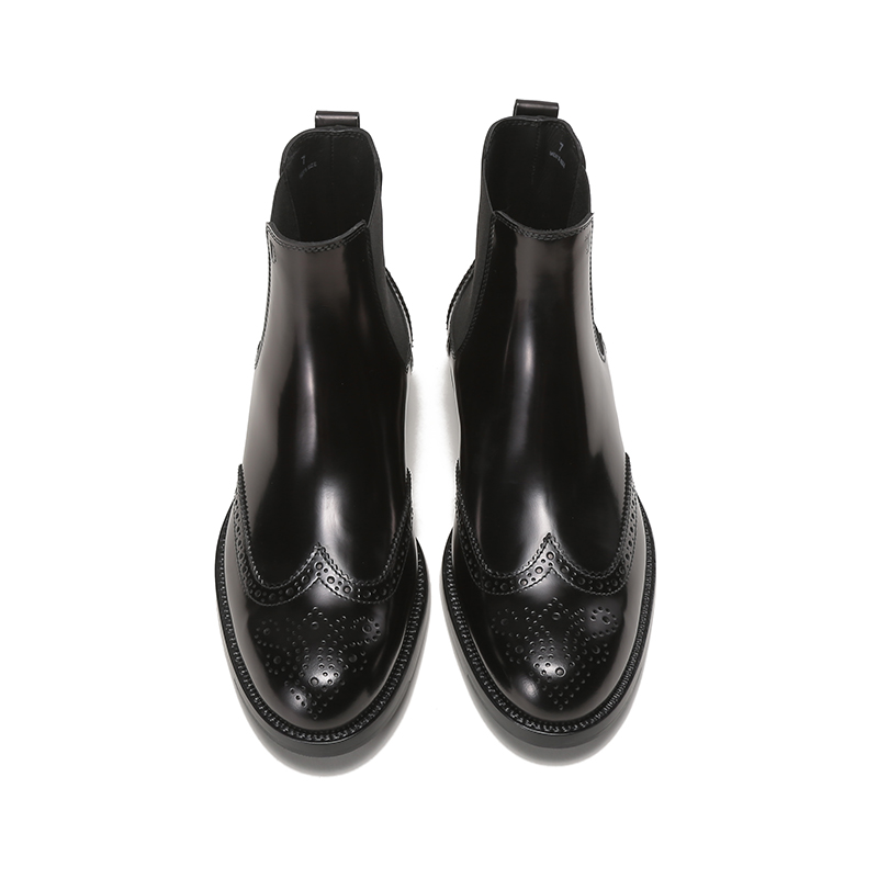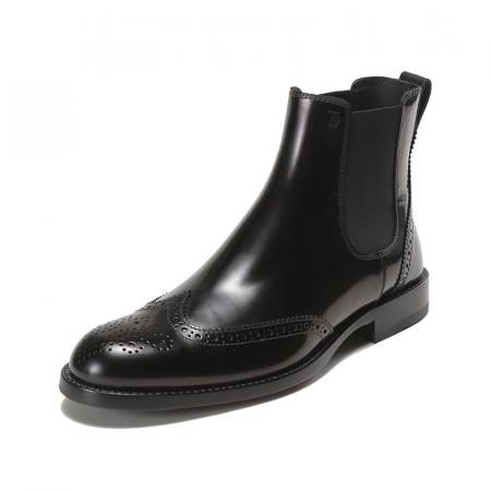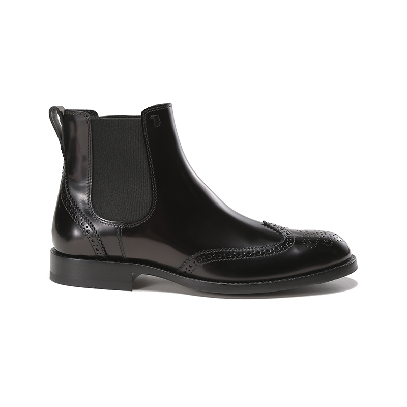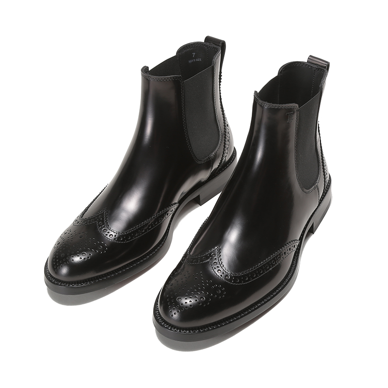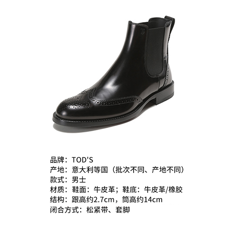 自营Tod'S 托德斯男士牛皮穿孔雕花靴子短靴踝靴切尔西皮靴黑色 XXM01E0EA20AKTB999