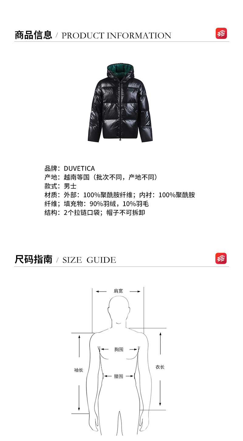 - 材质:外部:100%聚酰胺纤维;内衬:100%聚酰胺纤维;填充物:90%羽绒,10%羽毛