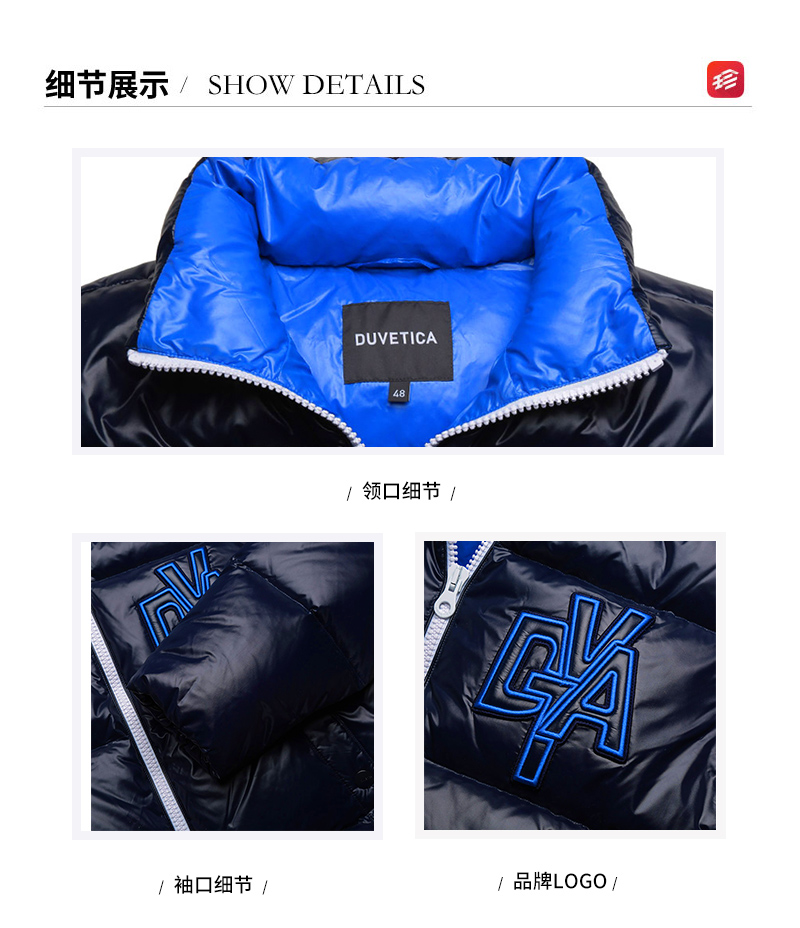 Duvetica为意大利品牌,主要生产高质量的羽绒夹克。其原本为各大时尚品的下游代工厂,经过数十年经验的积累,于2002年创立自有品牌。它的衣服采用了法国南部Perigord所养殖鸭与鹅的天然羽绒,含绒量达到90%,呈现出来的特色就是质轻、保暖且舒适。加上设计团队独家研发的亮面材质,以及对高品质的追求和独特的设计风格,引发了欧洲和日本潮流人士的热捧。