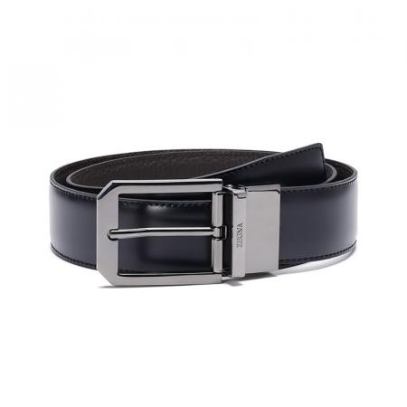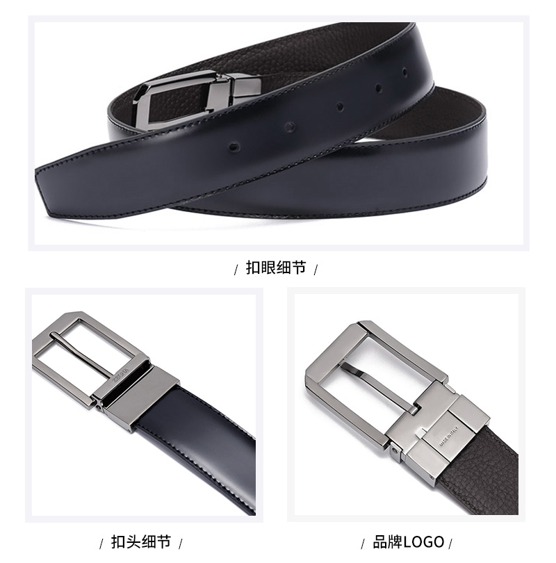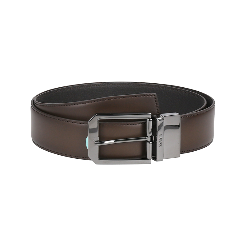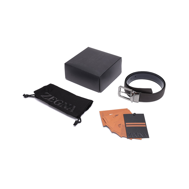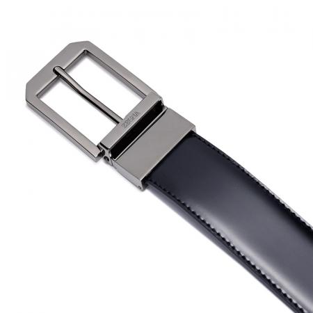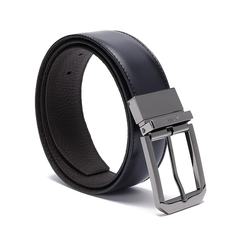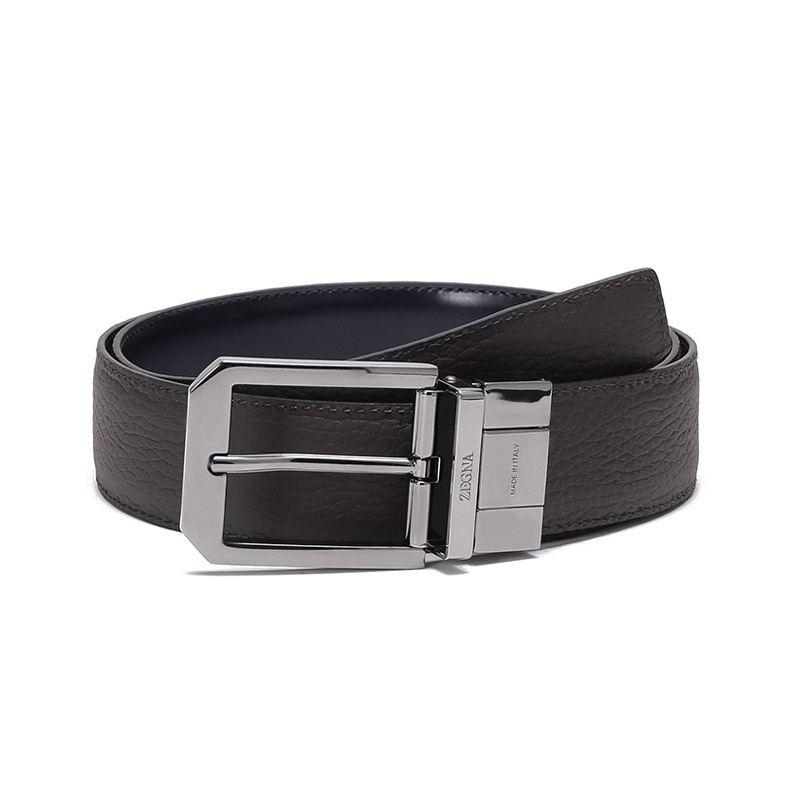 - 皮革双面皮带,灵活演绎百变正装造型。结合两种纹理,充分彰显精湛皮革工艺的巨大潜能。饰以棱角分明的杰尼亚搭扣,令设计更显利落考究。