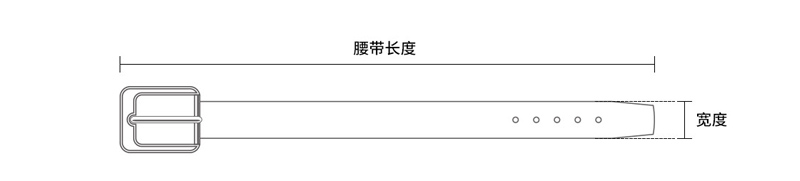 - 结构:针扣式腰带,5个扣眼,扣眼间距2.5cm