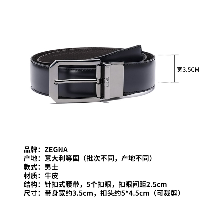 自营ZEGNA 杰尼亚 新品 男士牛皮深蓝色/深棕色977针扣可裁剪双面旋转皮带腰带3.5cm LHAVG B011RZ TBT