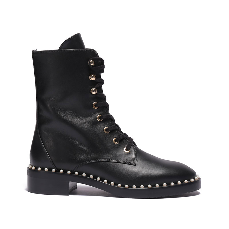自营Stuart Weitzman 思缇韦曼女士牛皮系带靴子短靴马丁靴黑色 SONDRA BLACK SMO SMOOTH CALF