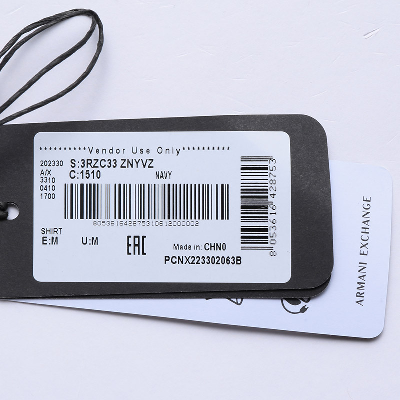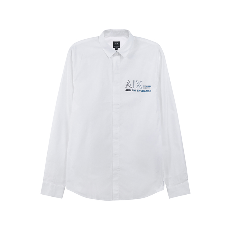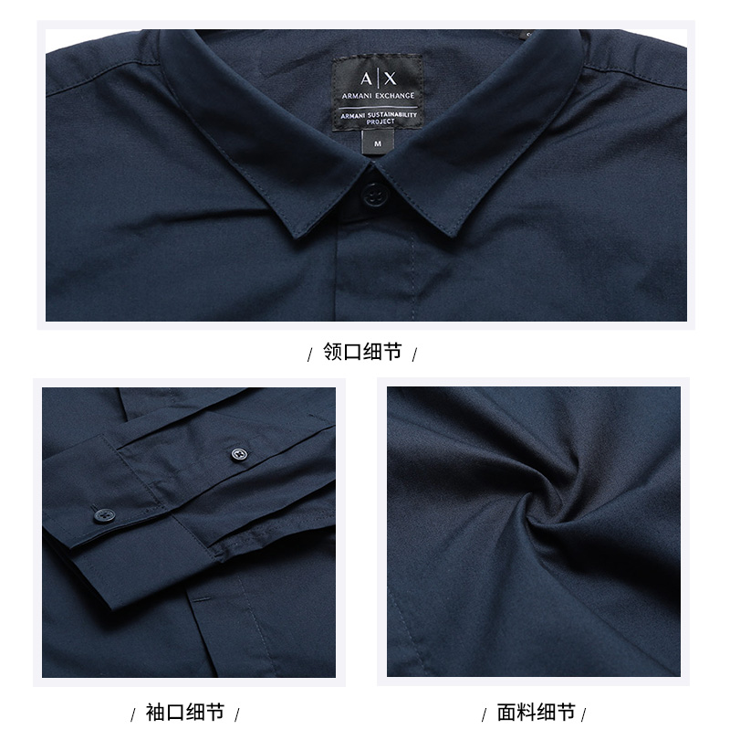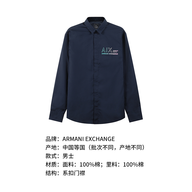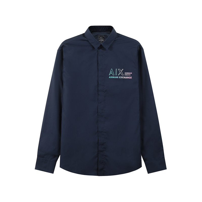 自营Armani Exchange 阿玛尼 男士海军蓝字母胶印长袖衬衫 3RZC33 ZNYVZ 1510