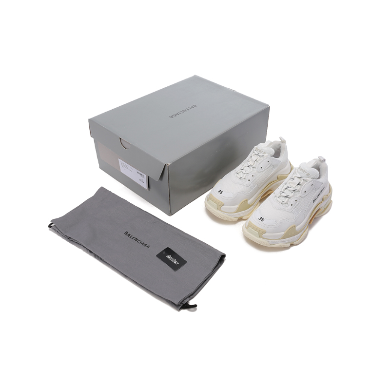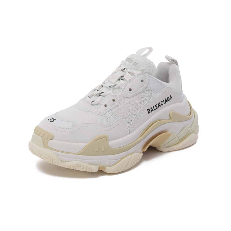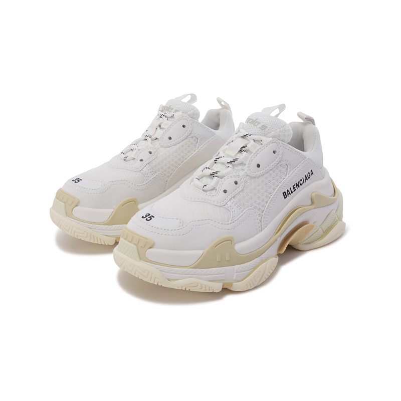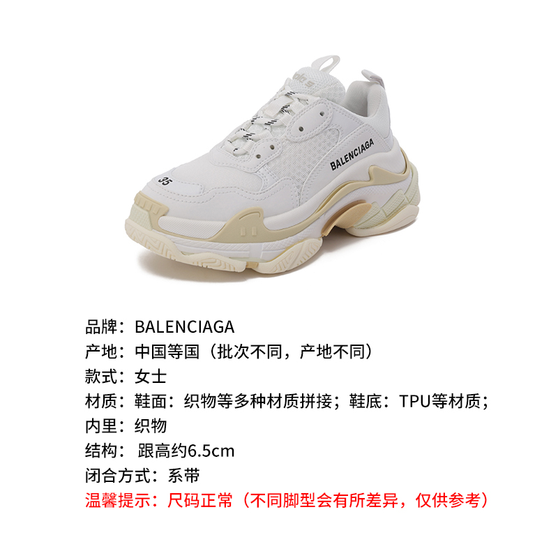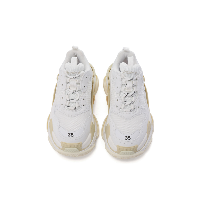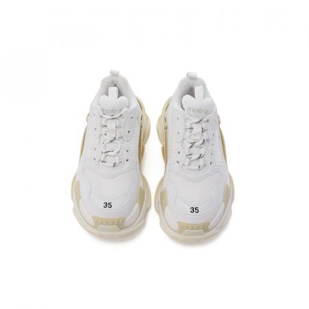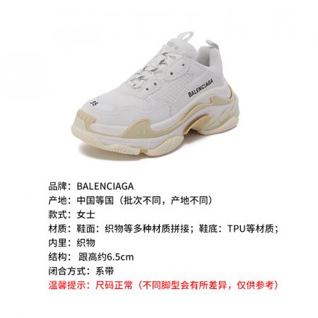 自营Balenciaga 【新品】巴黎世家 女士Triple S系列白色系带休闲运动鞋老爹鞋厚底鞋 524036 W2CA1 9000 跟高6.5cm