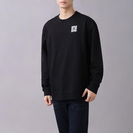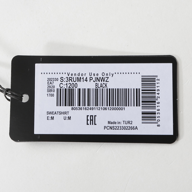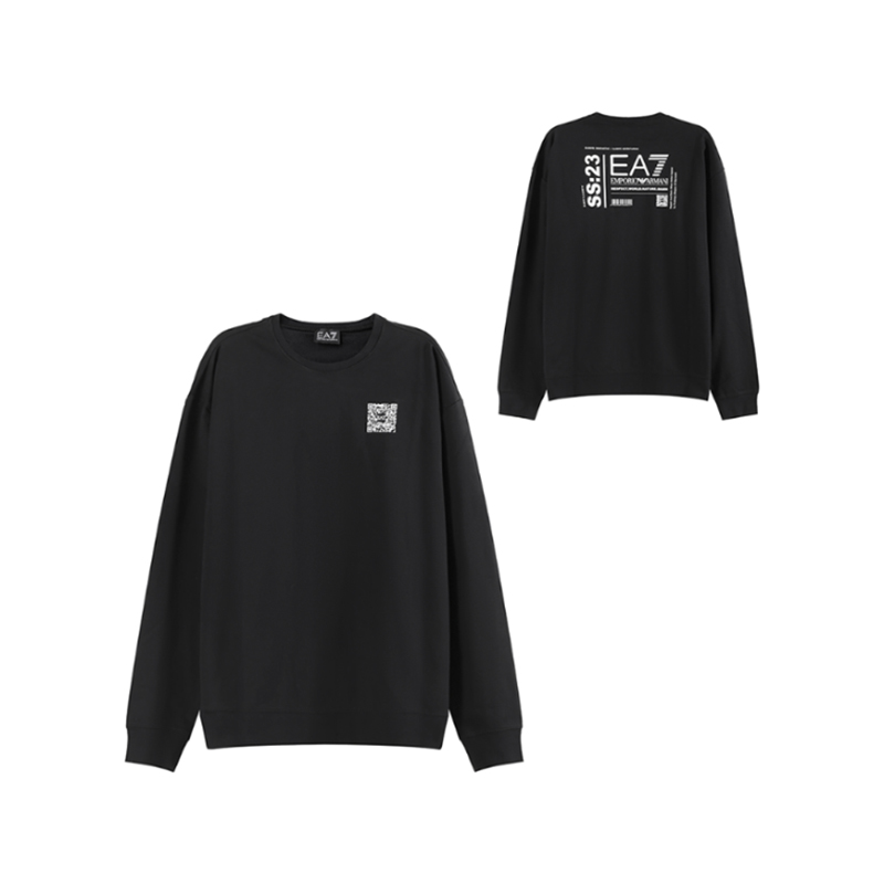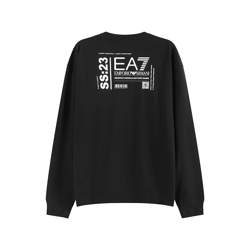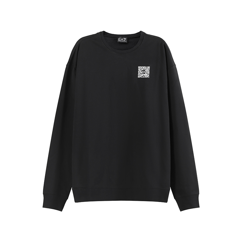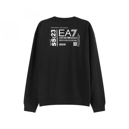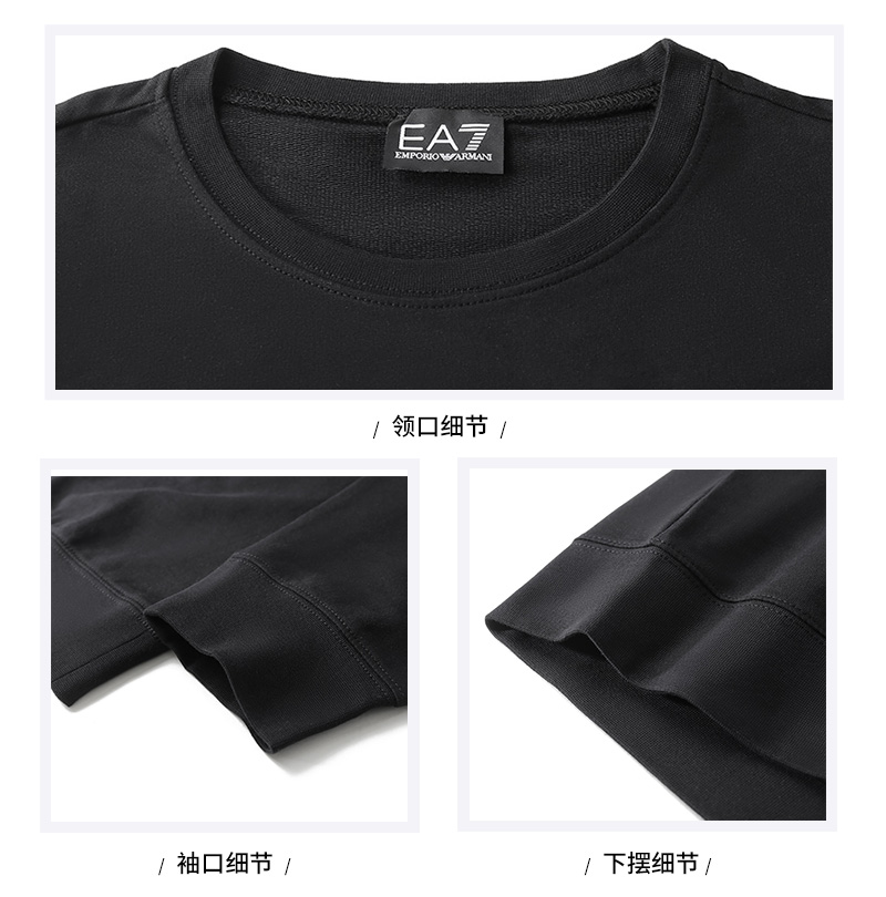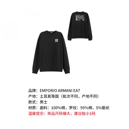 自营EA7 阿玛尼 男士棉质黑色徽标胶印圆领长袖卫衣运动衫 3RUM14 PJNWZ 1200