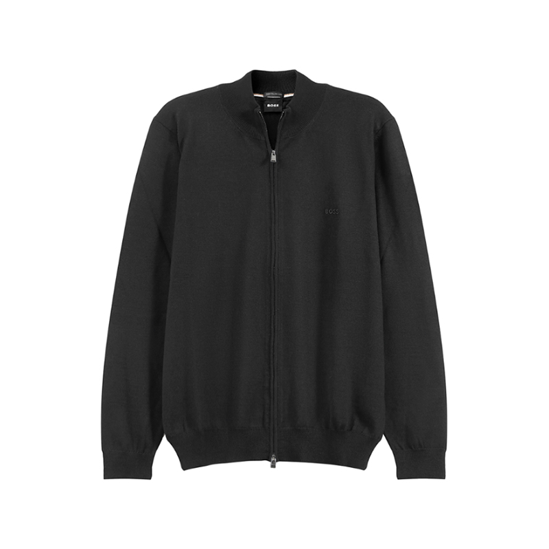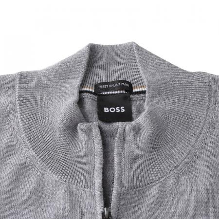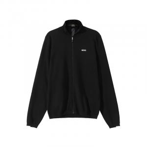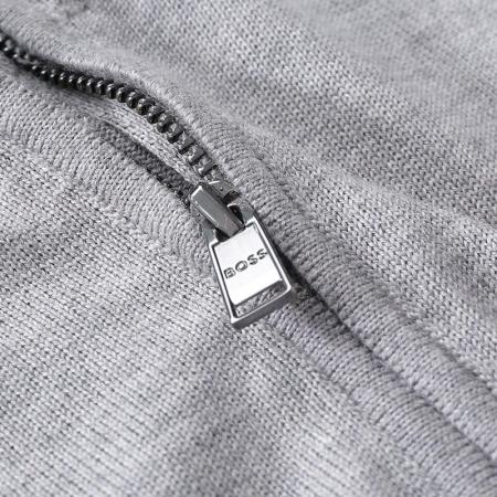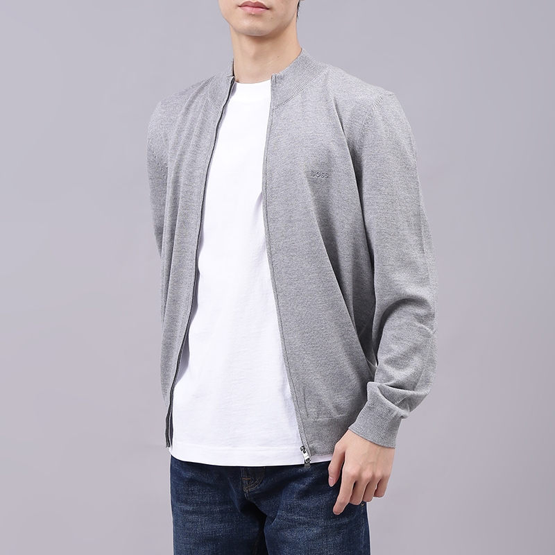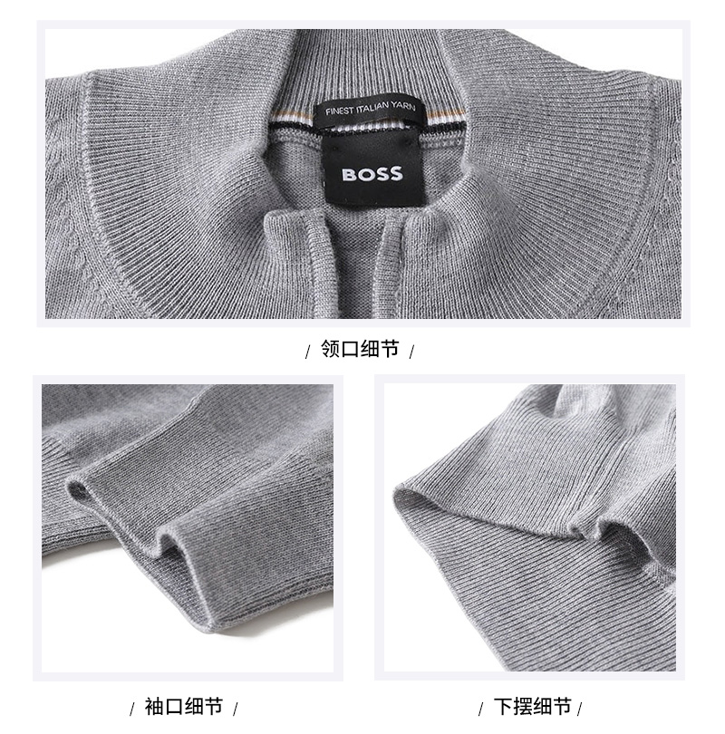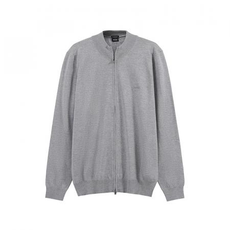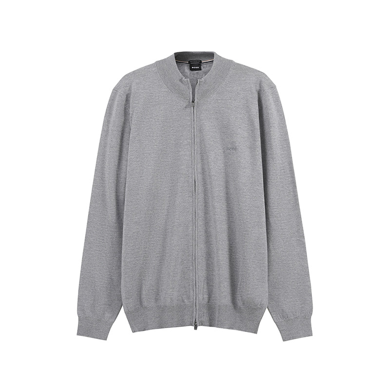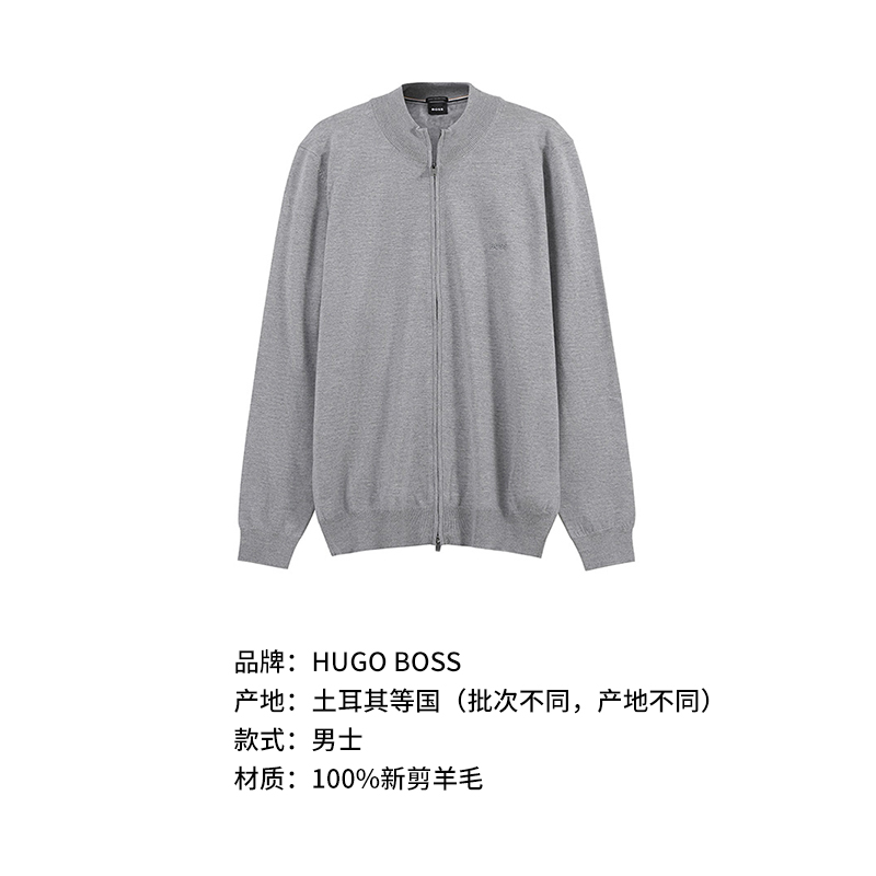 自营Hugo Boss 雨果博斯 男士black系列新剪羊毛灰色LOGO刺绣圆领拉链羊毛衫针织开衫 50476347 041