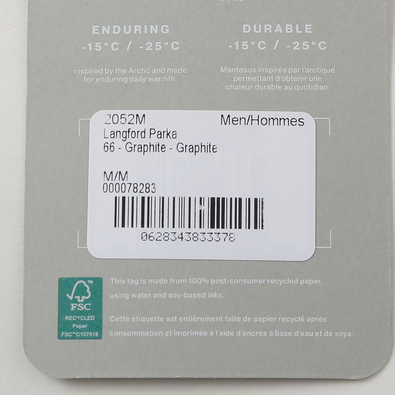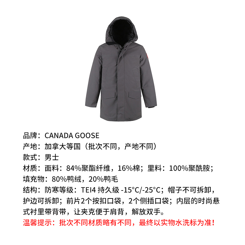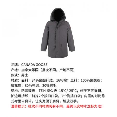 自营Canada Goose 加拿大鹅【新品】 男士石墨色中长款Langford派克大衣鸭绒连帽羽绒服外套 2052M 66