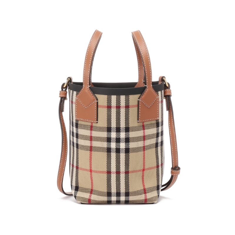 - 精巧托特包,选用棉质帆布面料打造,装饰 Burberry 格纹。搭配可调式肩背带,可缔造斜背造型。