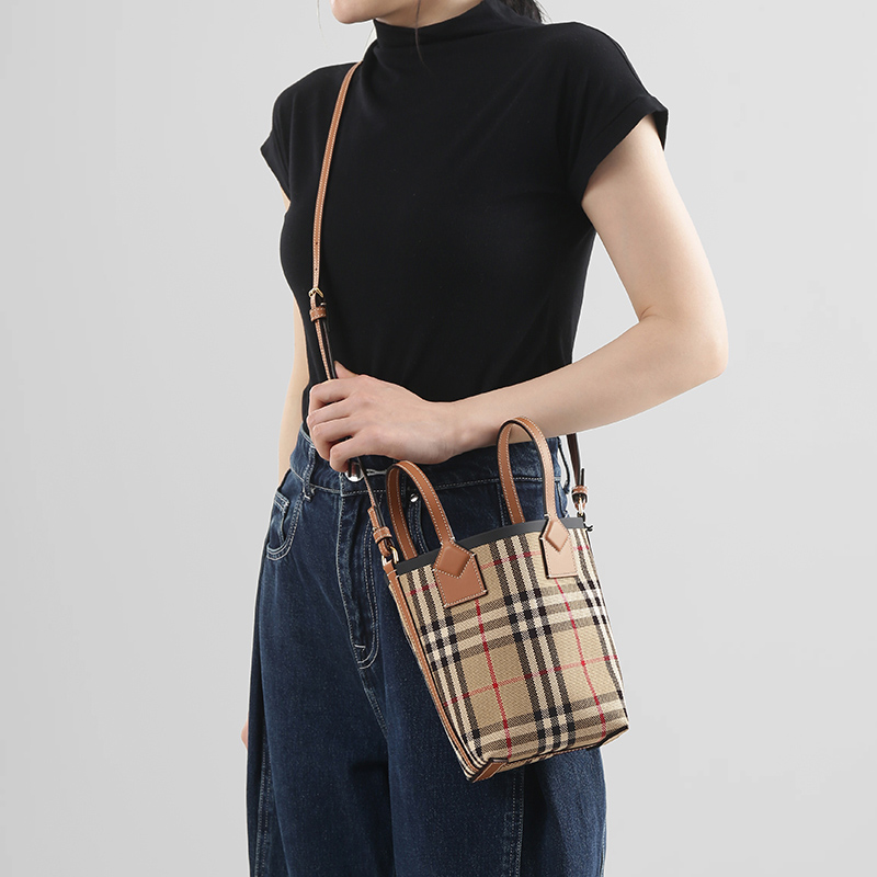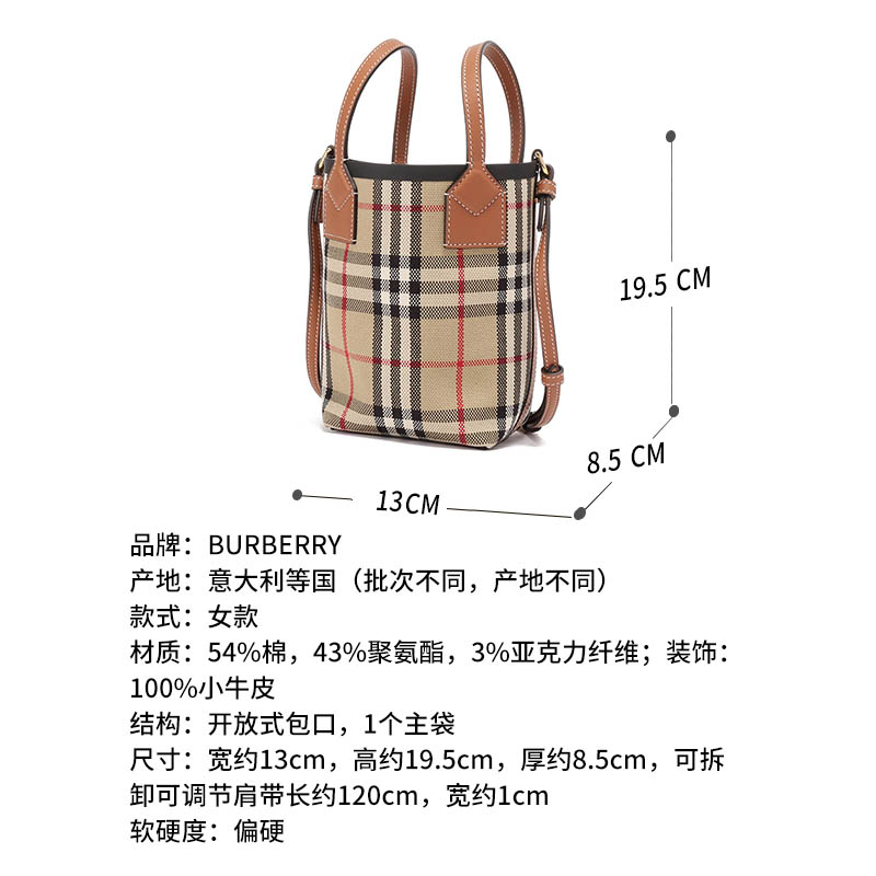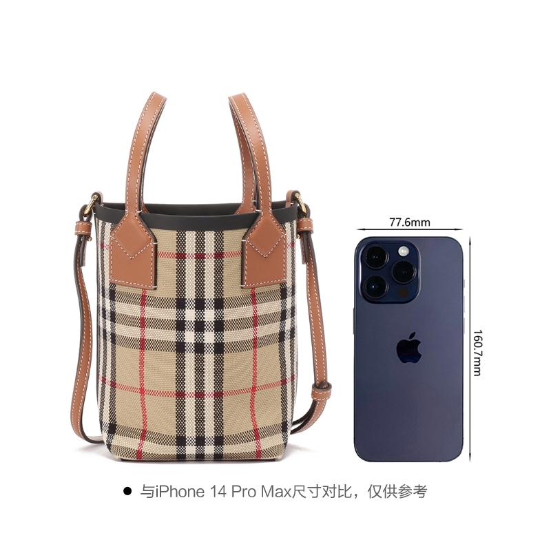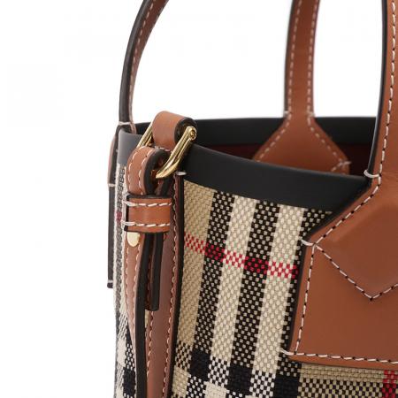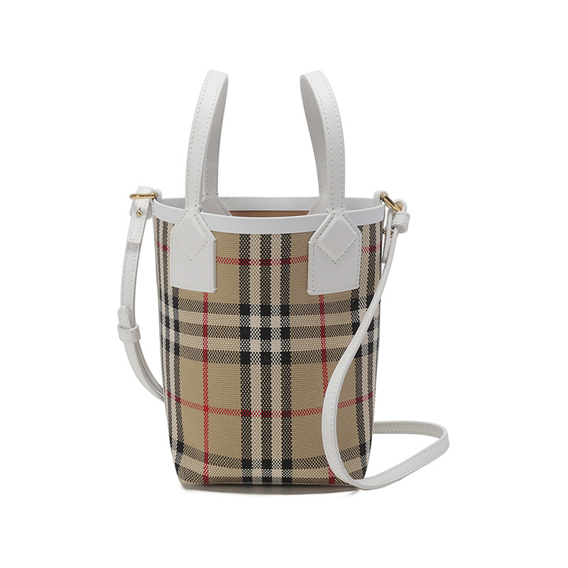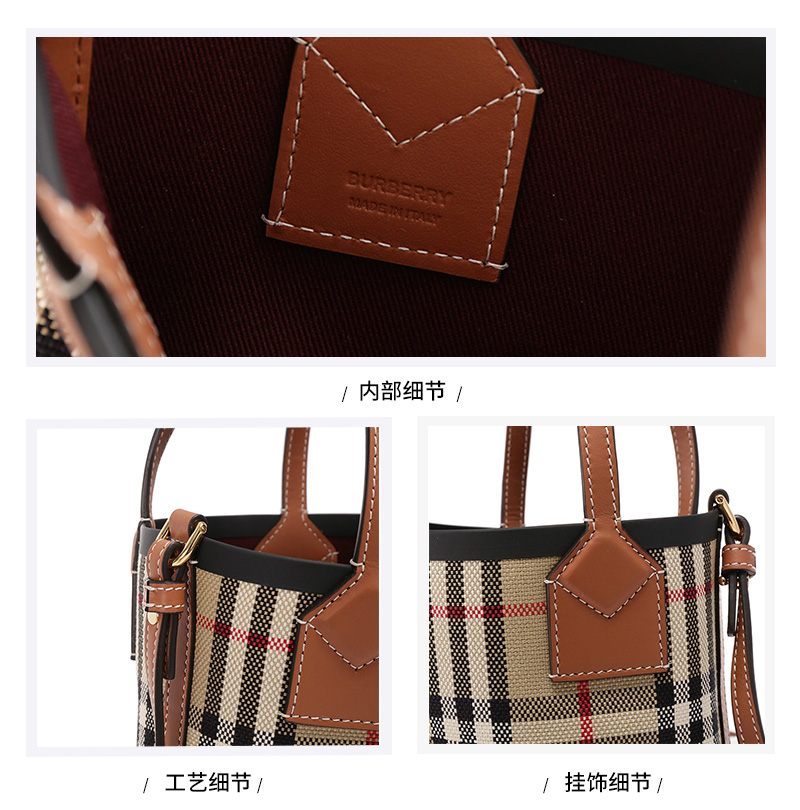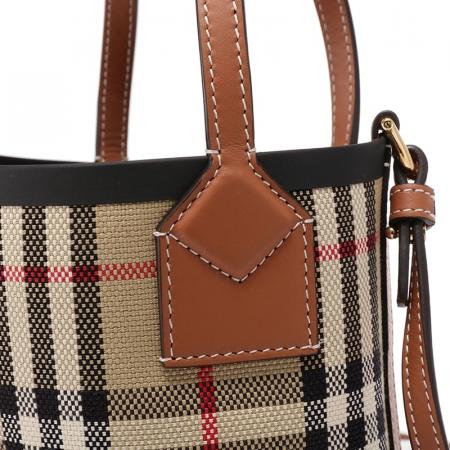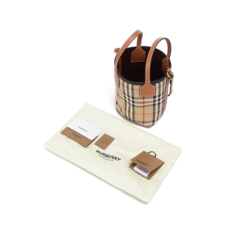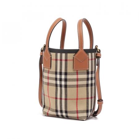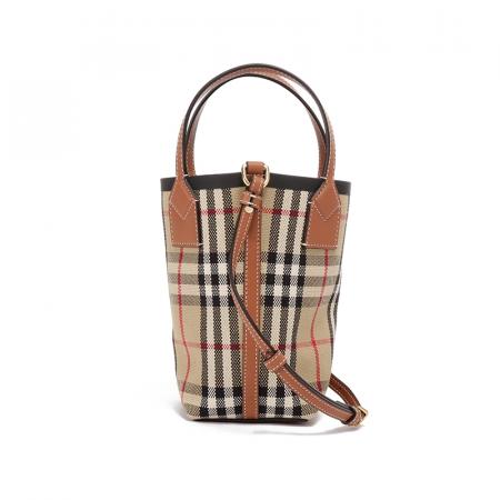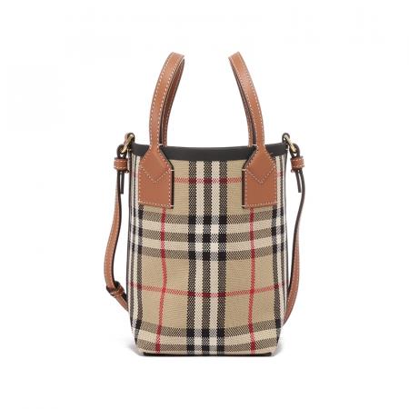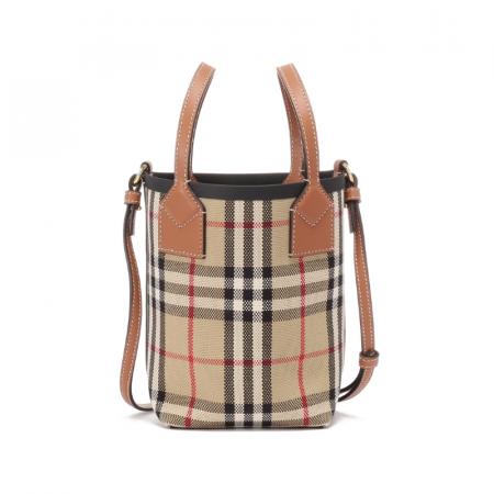 自营Burberry 博柏利 女包 女款典藏米色格纹London托特包水桶包手提单肩斜挎包迷你款 80704611