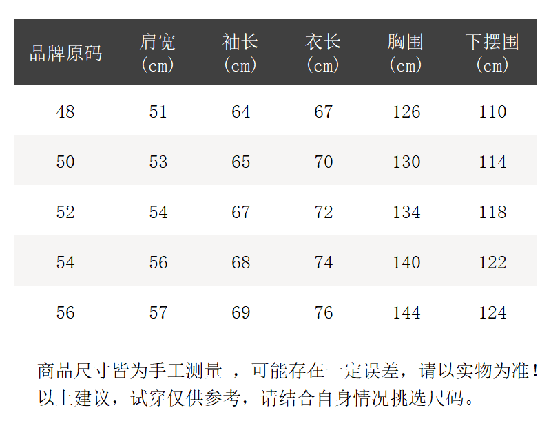 - 尺码说明