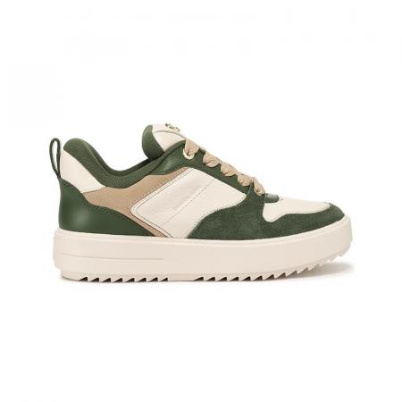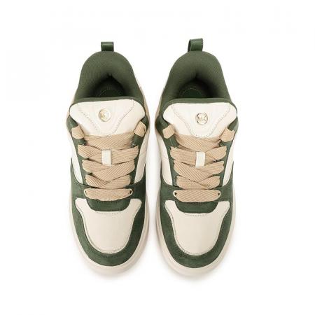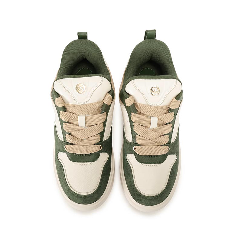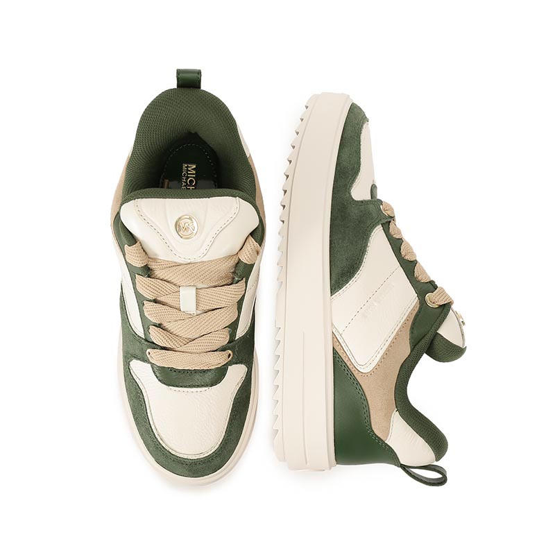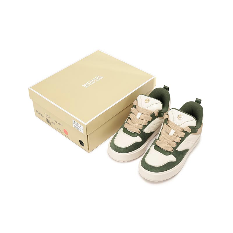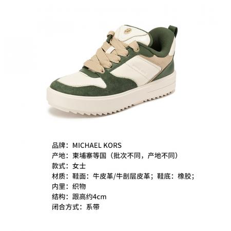 自营Michael Kors 迈克·科尔斯 女士白色/墨绿色拼色Rumi厚底系带休闲运动鞋 43F3RMFS4L AMZN GRN MLT