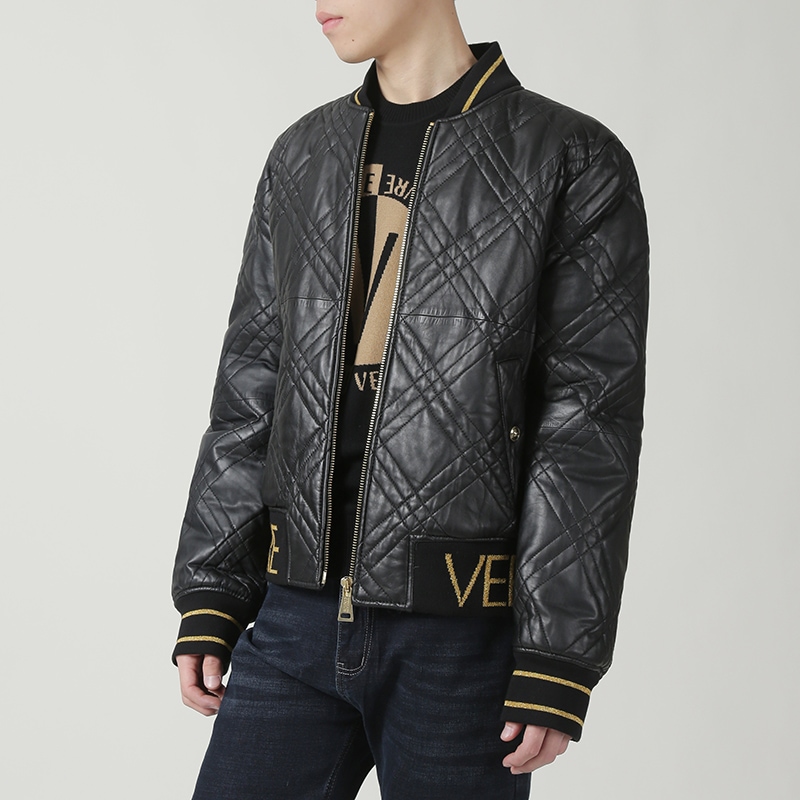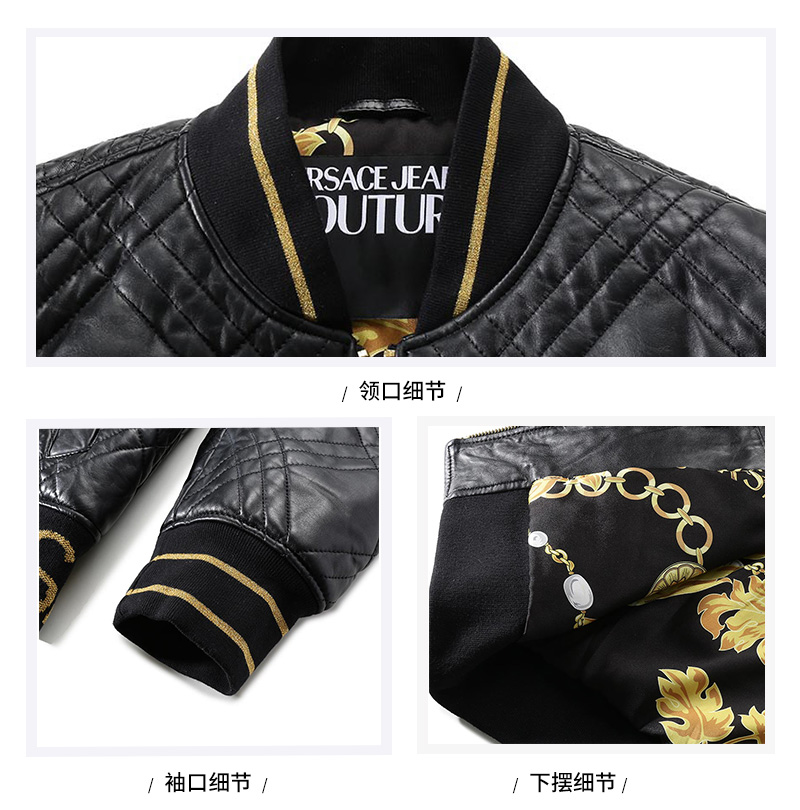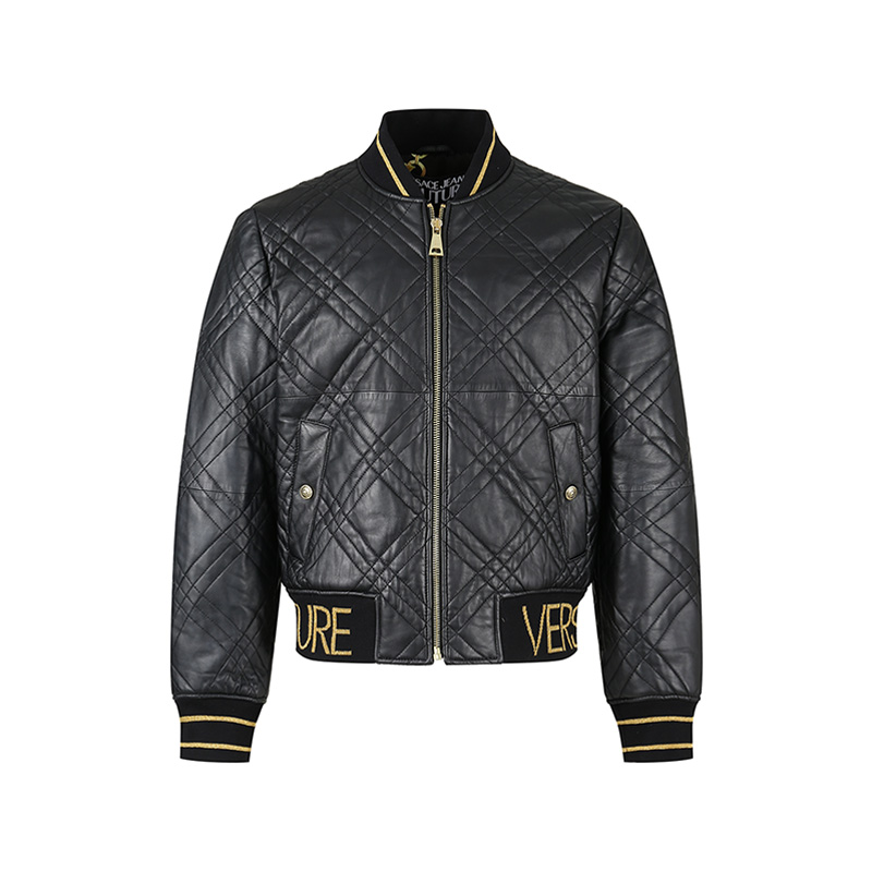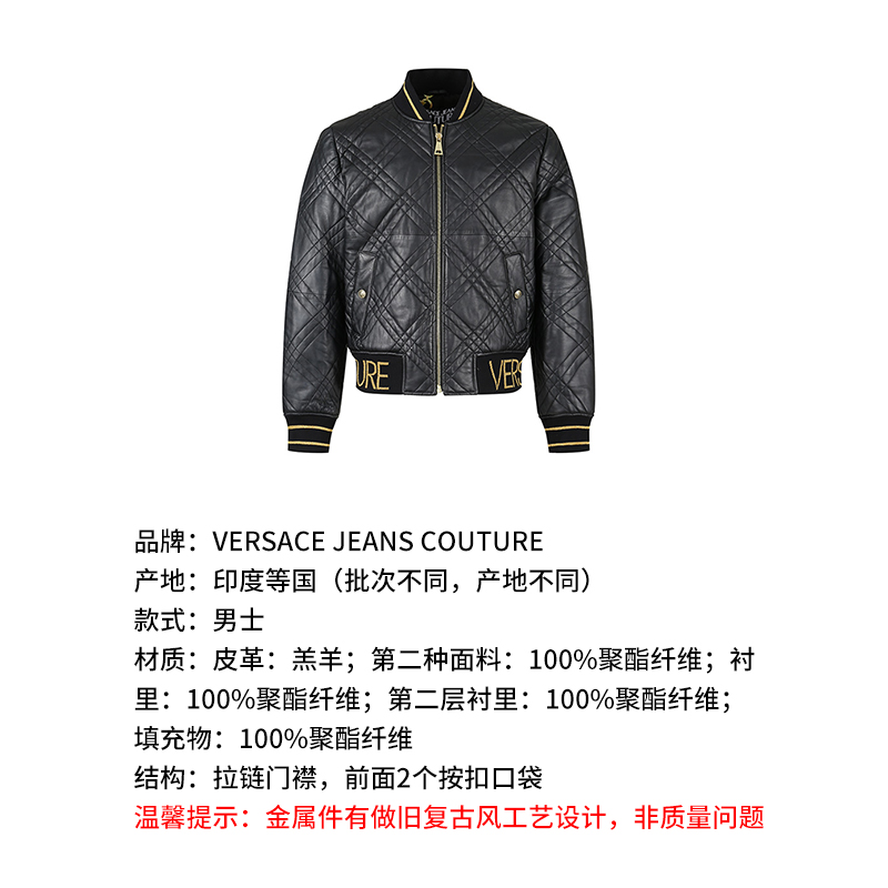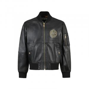 自营Versace Jeans Couture 范思哲 【新品】男士羔羊皮黑色飞行夹克夹棉皮衣上衣外套 75GAVP06 CPPS3 899