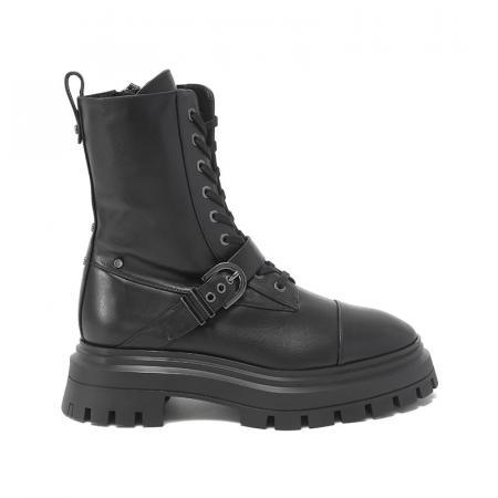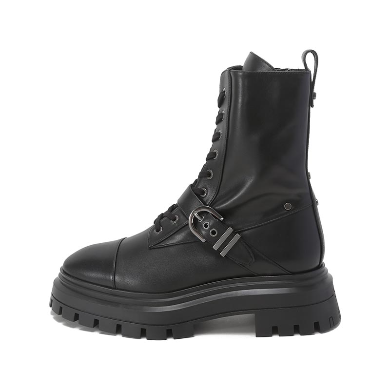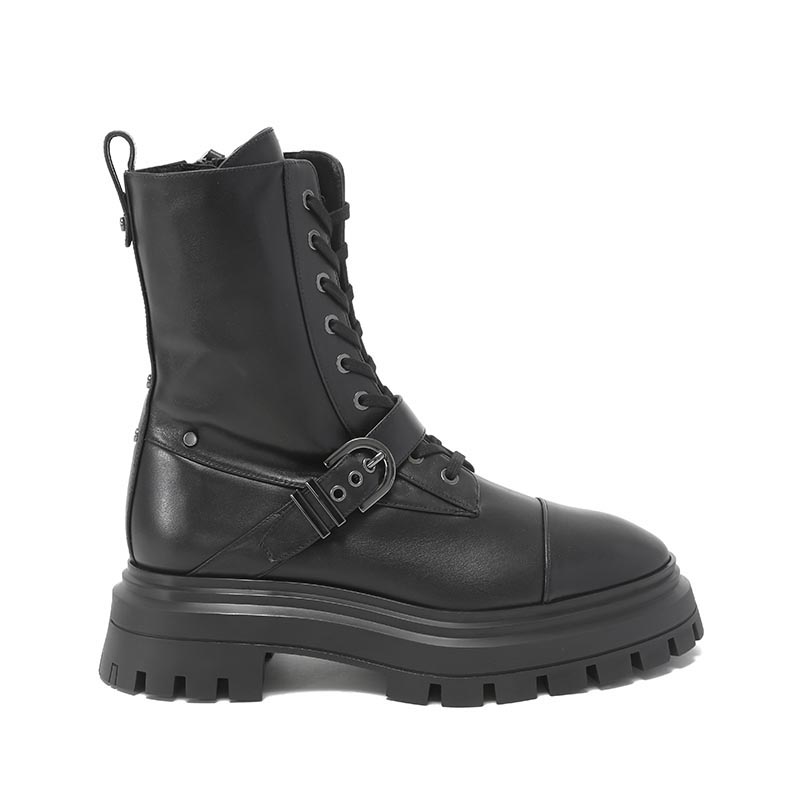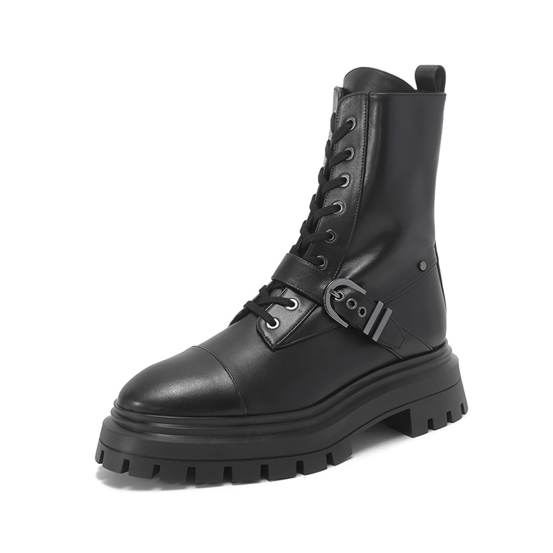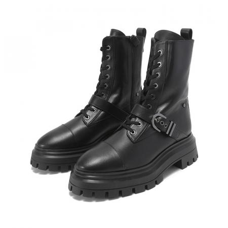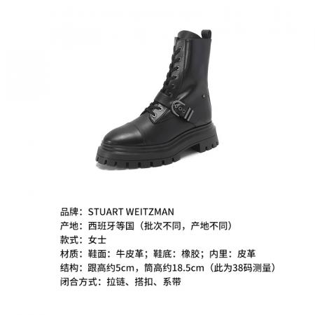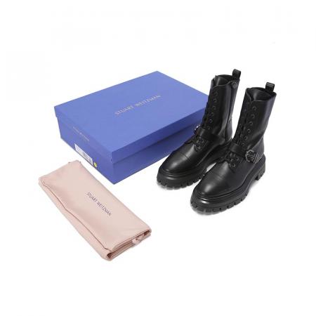 自营Stuart Weitzman 思缇韦曼 【新品】女士牛皮革黑色厚底靴子马丁靴短靴皮靴 MAVERICK BEDFORD BTE BLACK SMO SMOOTH CALF 跟高5cm