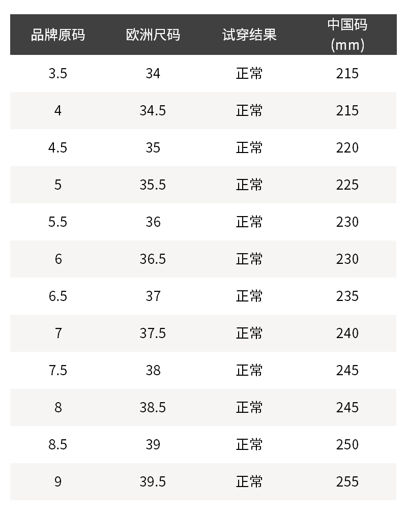 - 尺码说明