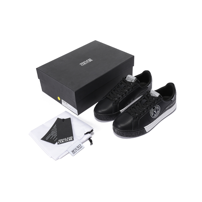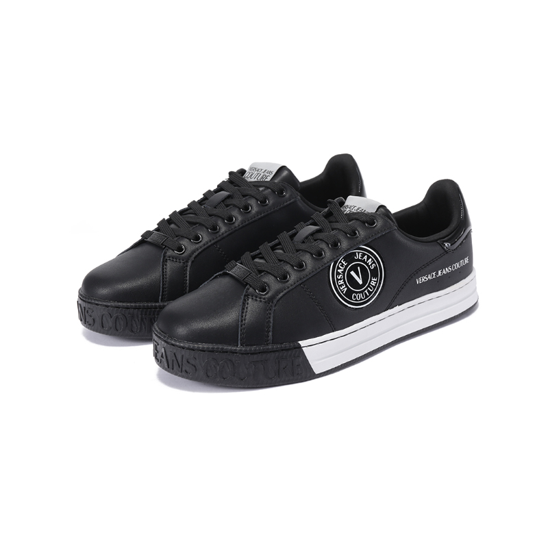 自营Versace Jeans Couture 范思哲【新品】 男士黑色V字徽章COURT 88系带休闲运动鞋板鞋 77YA3SK1 ZP333 899