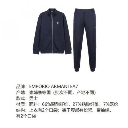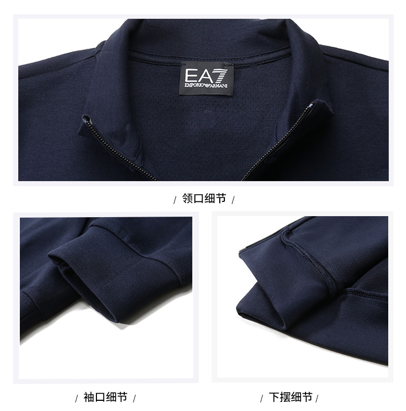 自营EA7 阿玛尼【新品】 男士藏蓝色盾标贴片立领拉链运动套装休闲开衫外套运动裤卫裤套装 8NPV56 PJ4EZ 1562