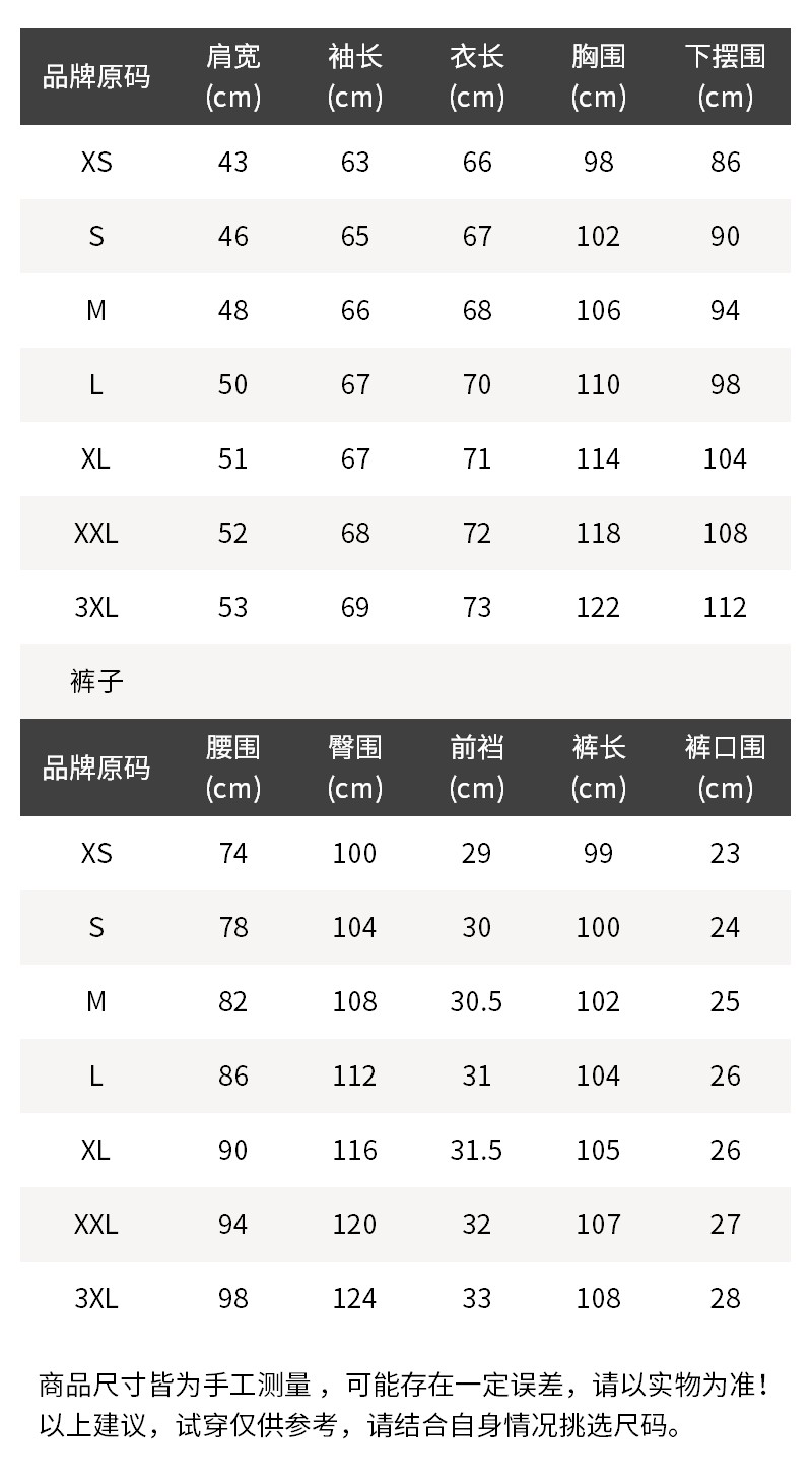 - 结构:上衣有2个口袋;裤子腰部有松紧、带抽绳,有2个口袋