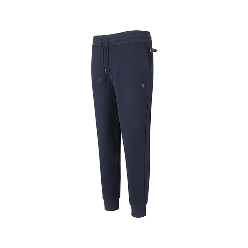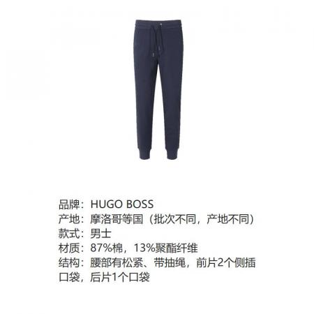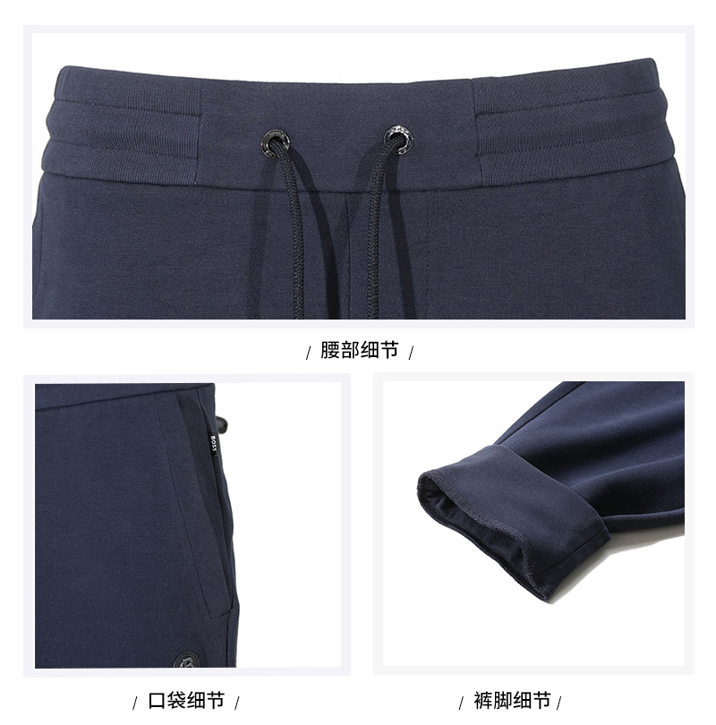 自营Hugo Boss 雨果博斯【新品】 男士black系列棉质海军蓝双B交织字母环保面料系带束脚运动休闲裤长裤卫裤 50520322 404