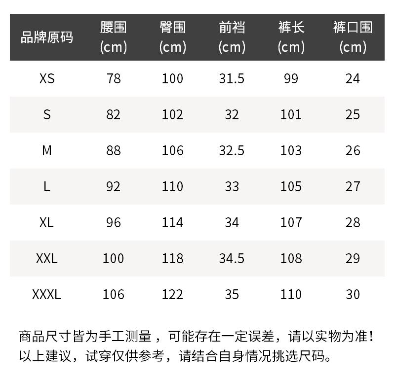 - 结构:腰部有松紧、带抽绳,前片2个侧插口袋,后片1个口袋