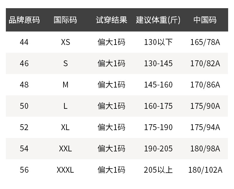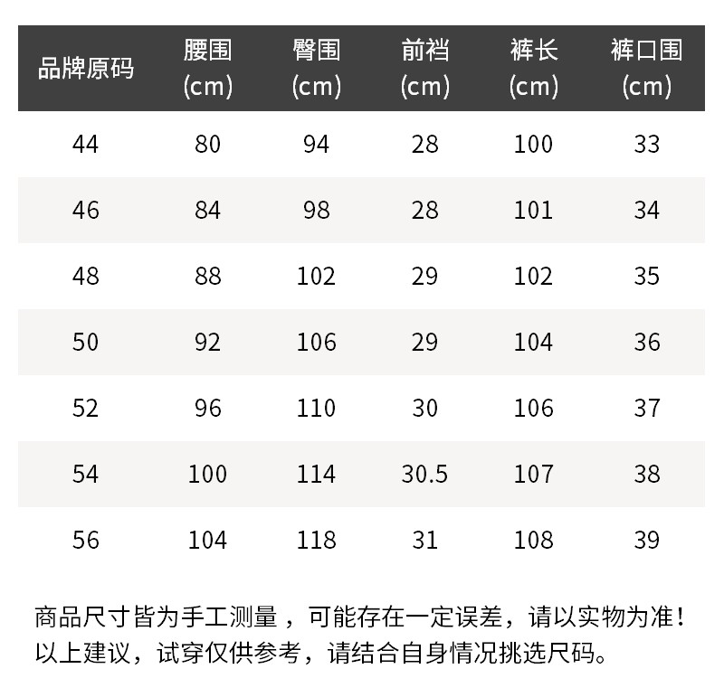 - 尺码说明