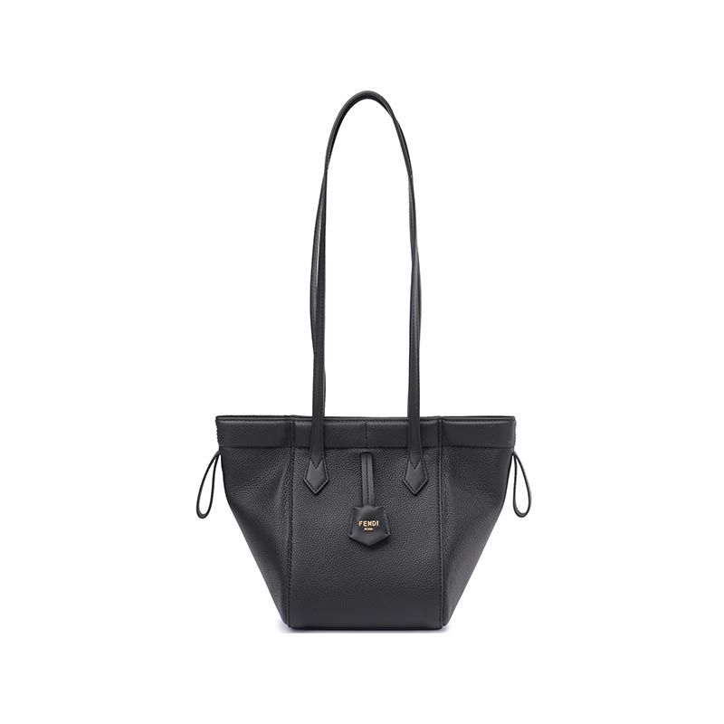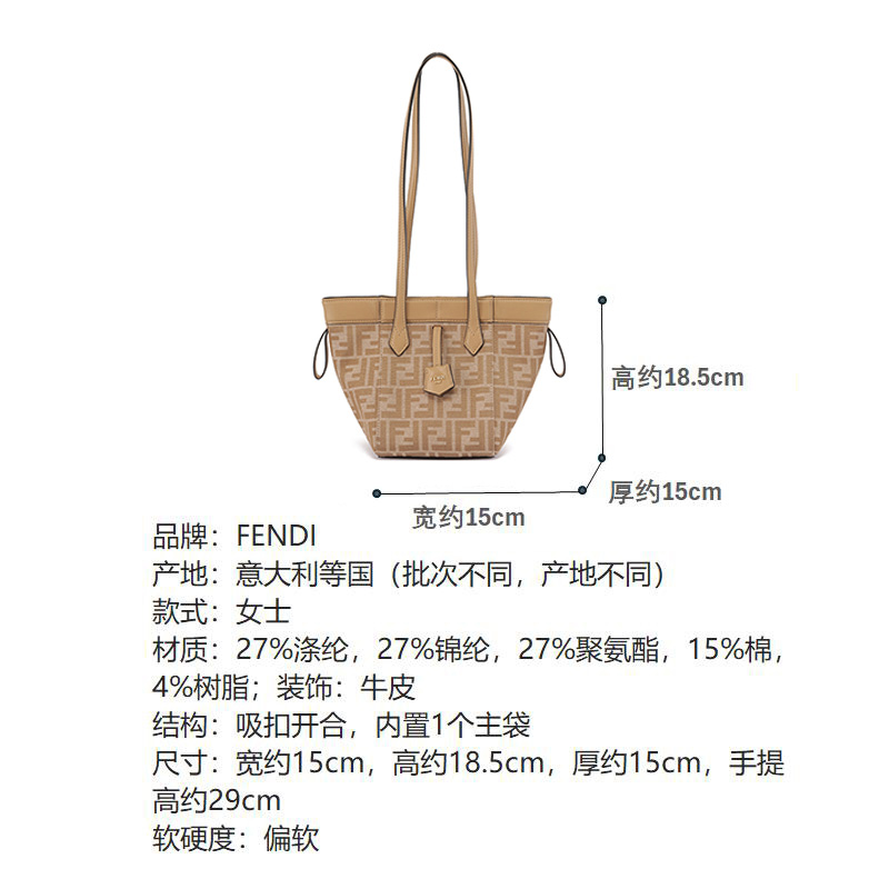- 迷你Origami手袋。该款式以可变形的创新设计,彰显FENDI的双面性和创意:配有8个磁扣组成的灵活机制,可以折叠成折纸风格的水桶包,磁铁都吸在中间的磁扣上时,轻轻拉一下两边的短肩带上的皮革系结,就变身成了手提袋。
