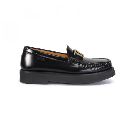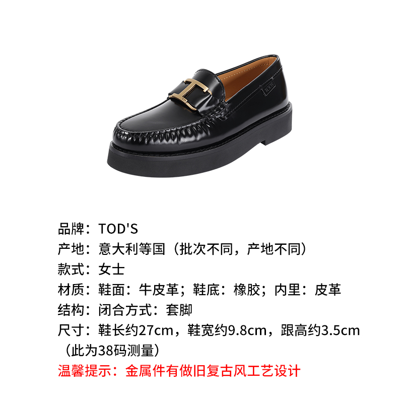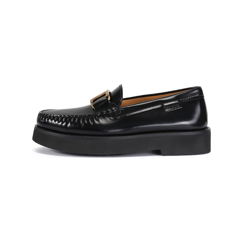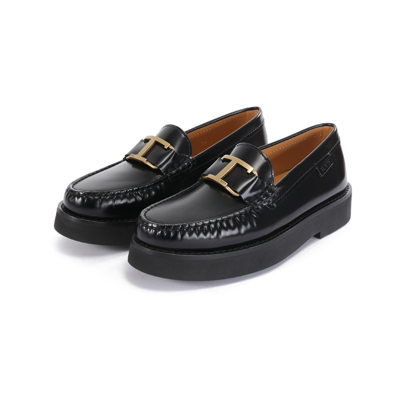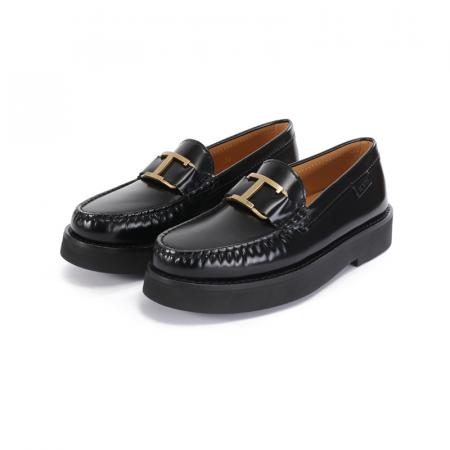 自营Tod'S 托德斯 【新品】 女士牛皮革黑色TIMELESS大T饰扣厚底休闲乐福鞋皮鞋单鞋 XXW54K0HN90SHAB999