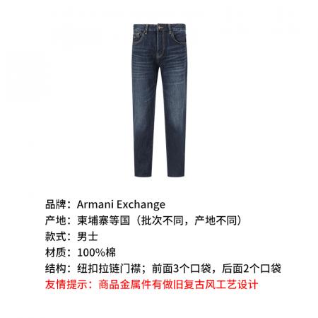 自营Armani Exchange 阿玛尼【新品】男士棉质靛蓝色牛仔裤长裤 3DZJ13 Z1UYZ 1500