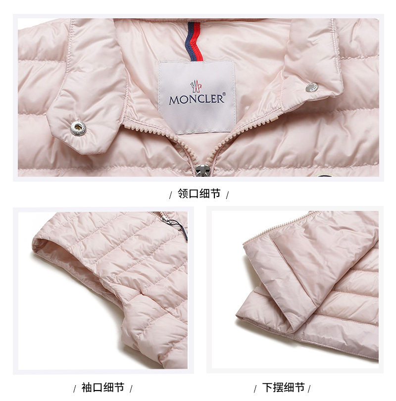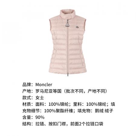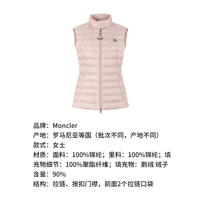 自营Moncler 盟可睐/蒙口 新品 女士浅粉色徽标贴片Igens修身版鹅绒保暖立领拉链马甲 K1 093 1A00067 597YF 529