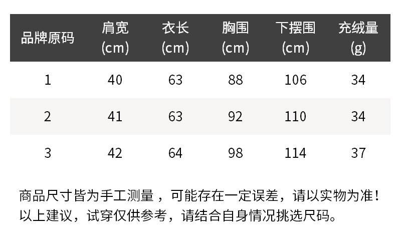 - 材质:面料:100%锦纶;里料:100%锦纶;填充物细节:100%聚酯纤维;填充物:鹅绒 绒子含量:90%