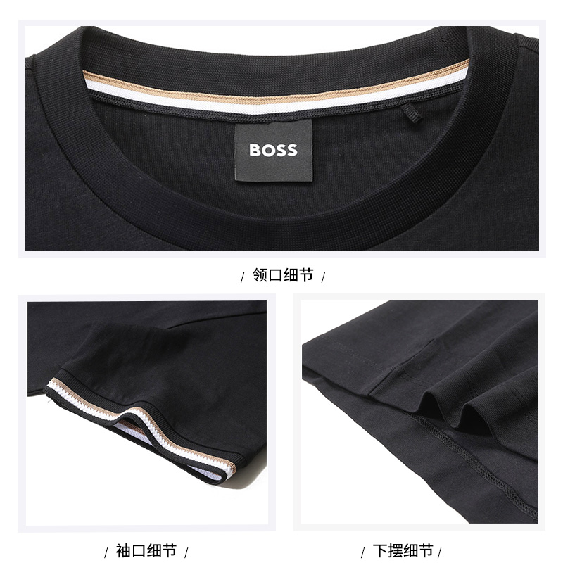 自营Hugo Boss 雨果博斯【新品】男士black系列棉质黑色环保面料圆领短袖T恤 50501097 001