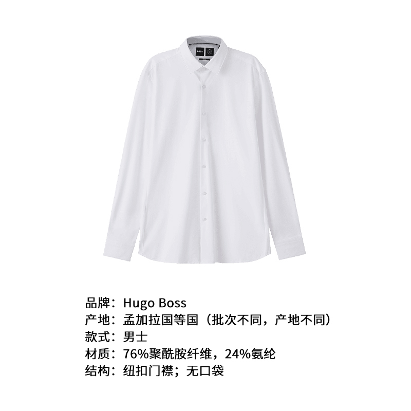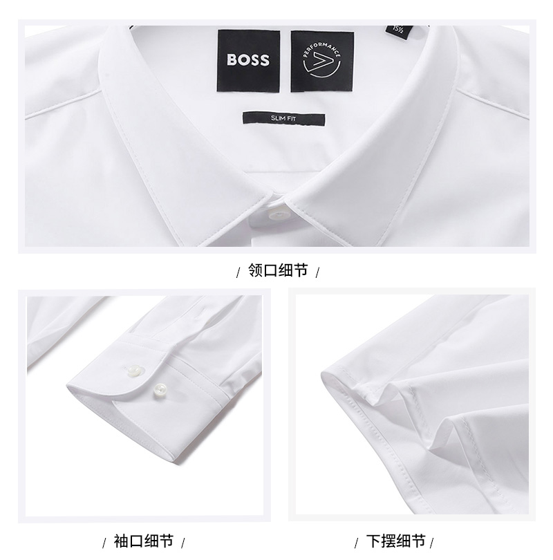 自营Hugo Boss 雨果博斯【新品】男士机能通勤系列白色performance商务长袖衬衫 50503554 100
