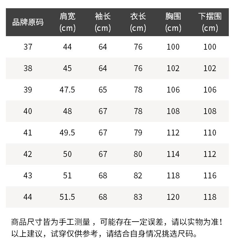 - 温馨提示:1.丢失包装及附件或拆除防损标签/吊牌时不予退换,敬请理解。2.批次不同,产地/细节有所不同,随机发货。3.所有尺寸皆为手工测量,存在1~3cm误差,请以实物为准!