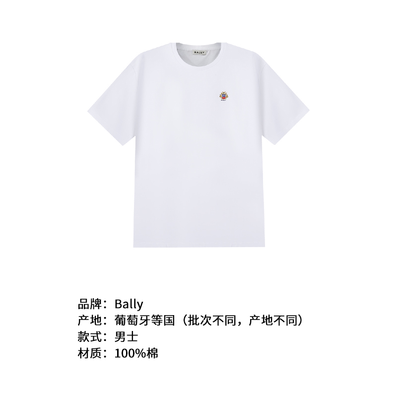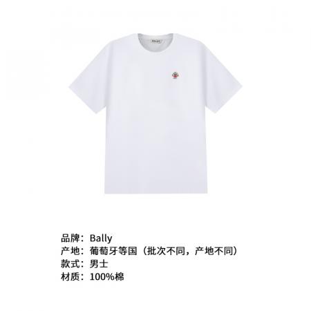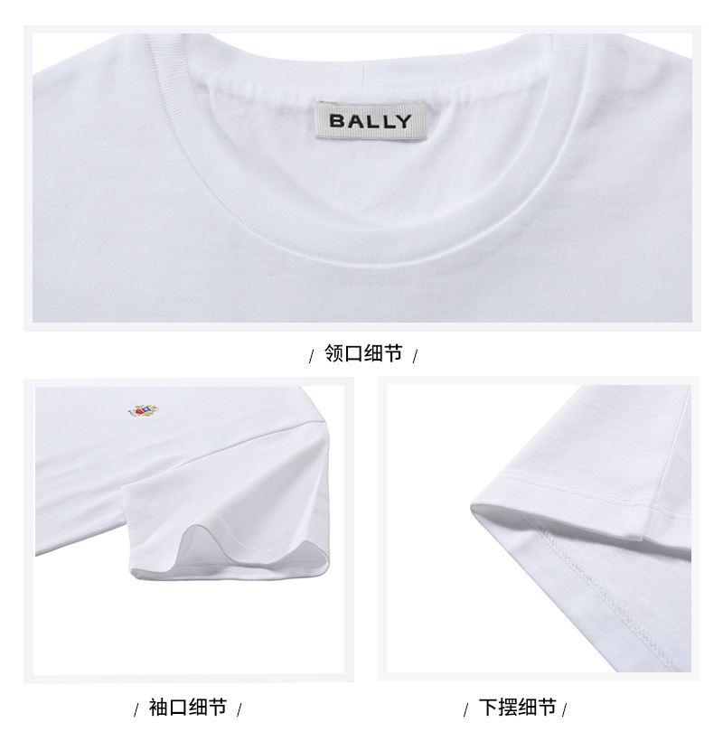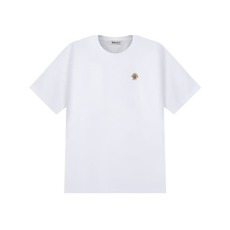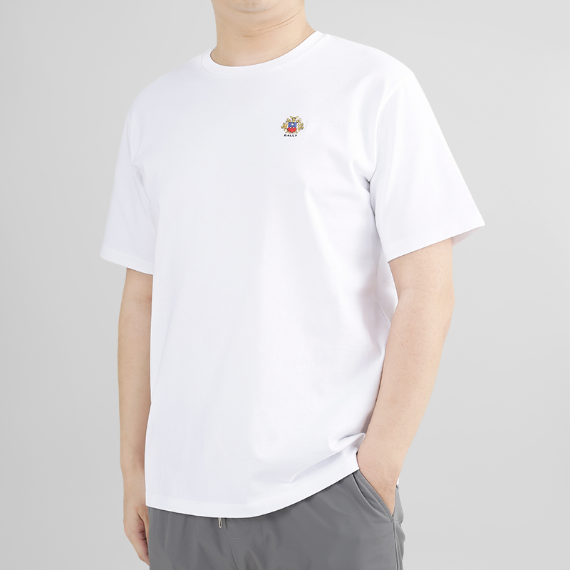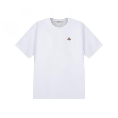 自营Bally 巴利 新品 男士棉质白色LOGO刺绣圆领短袖T恤 M5BAD34F 01 6308825