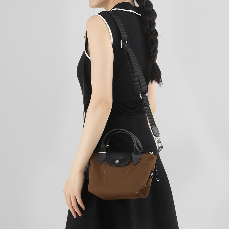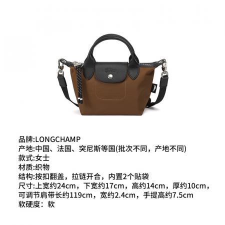自营Longchamp 珑骧 新品 女包 女士Le Pliage Energy系列织物巧克力色迷你mini短柄饺子包手提单肩斜挎包 1500 HSR 203