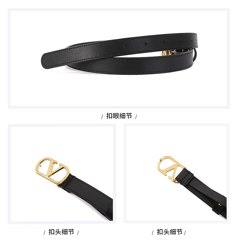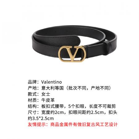 自营Valentino 华伦天奴 25秋冬新品 女士牛皮革黑色VLOGO SIGNATURE不可裁剪复古窄版皮带腰带2cm 7W2T0SM7IYR 0NO