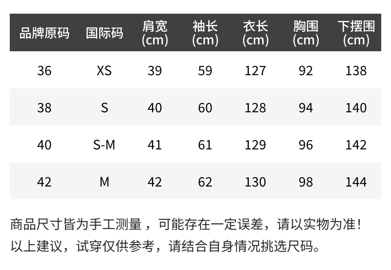 - 温馨提示:1.丢失包装及附件或拆除防损标签/吊牌时不予退换,敬请理解。2.批次不同,产地/细节有所不同,随机发货。3.所有尺寸皆为手工测量,存在1~3cm误差,请以实物为准!