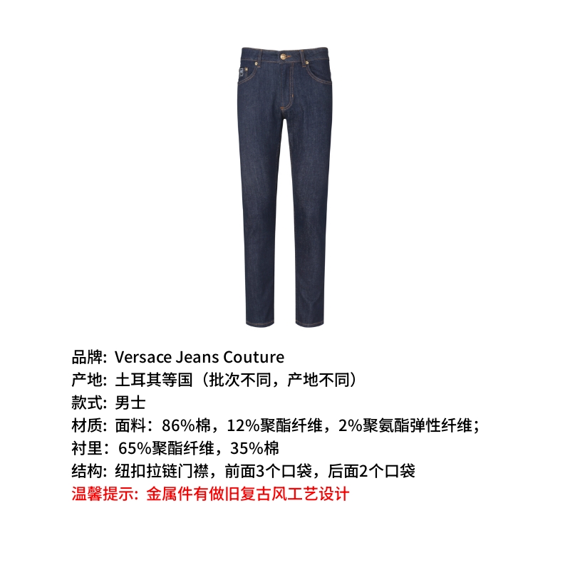 自营Versace Jeans Couture 范思哲 新品 男士棉质蓝色修身款牛仔裤长裤 78GAB5D0 CDWA7 904