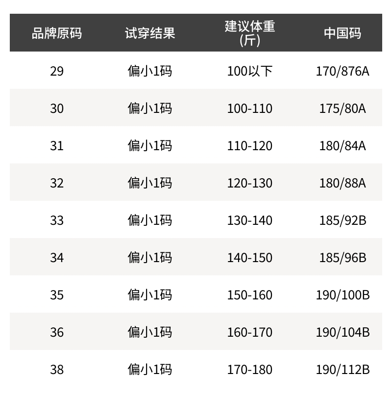 - 尺码说明