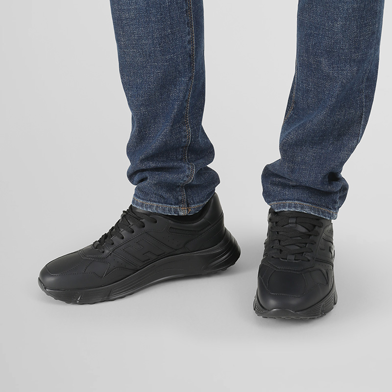 - 新款Hogan Hyperlight 系列运动休闲鞋鞋型流畅又动感,结合慢跑鞋线条和都市元素,鞋面为光滑皮革材质,点缀品牌经典细节H字母。记忆泡沫内底和带鞋钉的轻便外底平稳舒适,尽显青春活力。