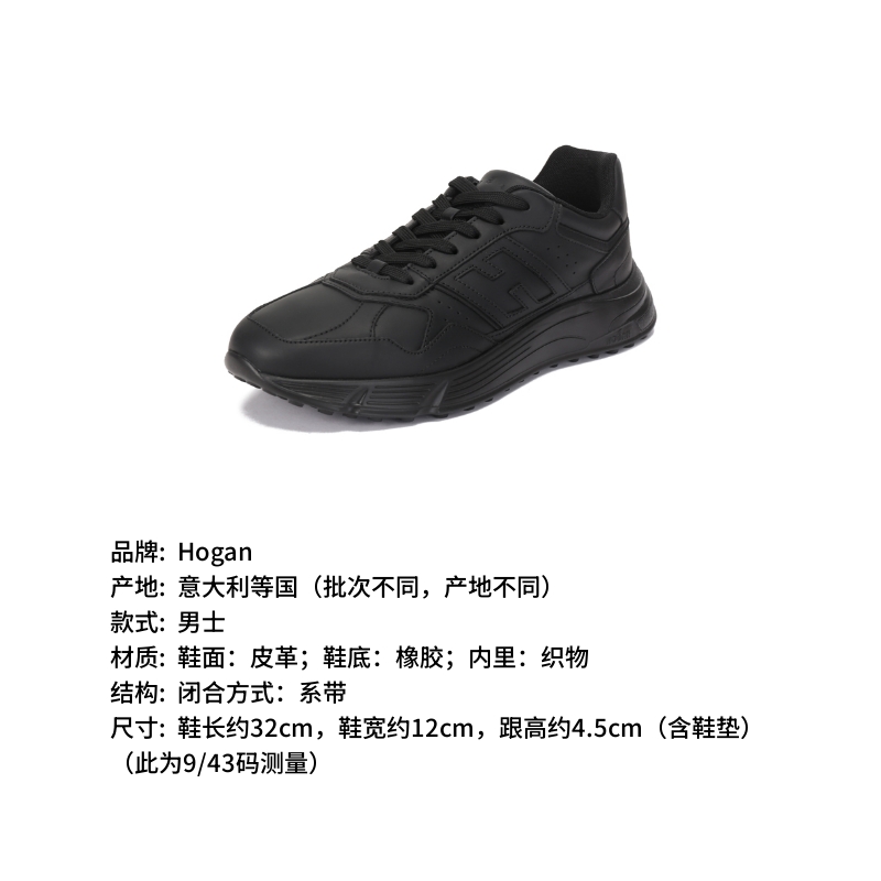 自营Hogan 25秋冬新品 男士Hyperlight系列皮革黑色H字母H563厚底系带运动休闲鞋 HXM5630FK700ZLB999