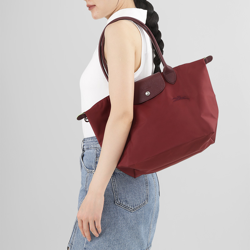 自营Longchamp 珑骧 新品 女包 女士LE PLIAGE GREEN系列织物石榴色中号长柄可折叠饺子包托特包购物袋手提单肩包 2605 919 P98